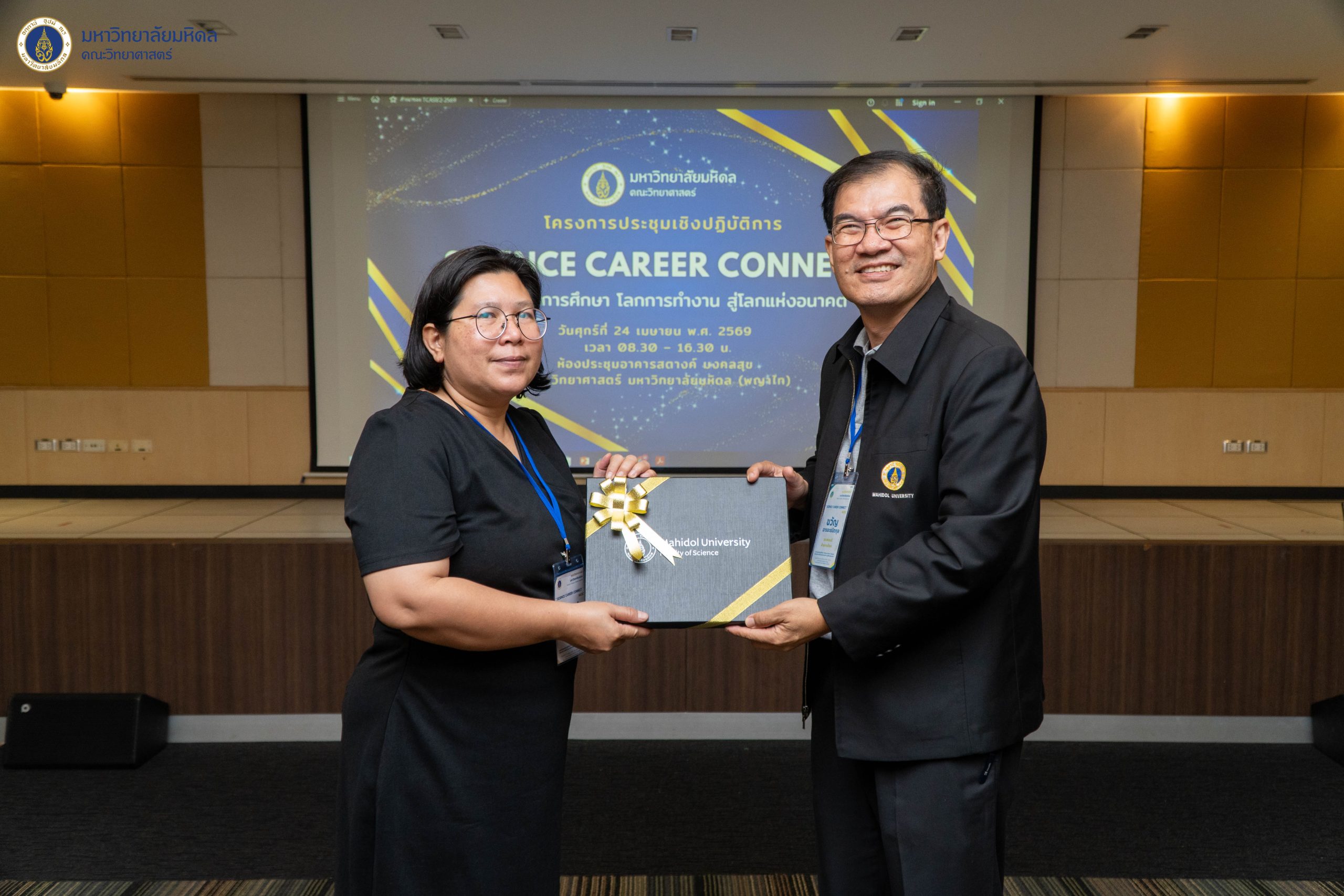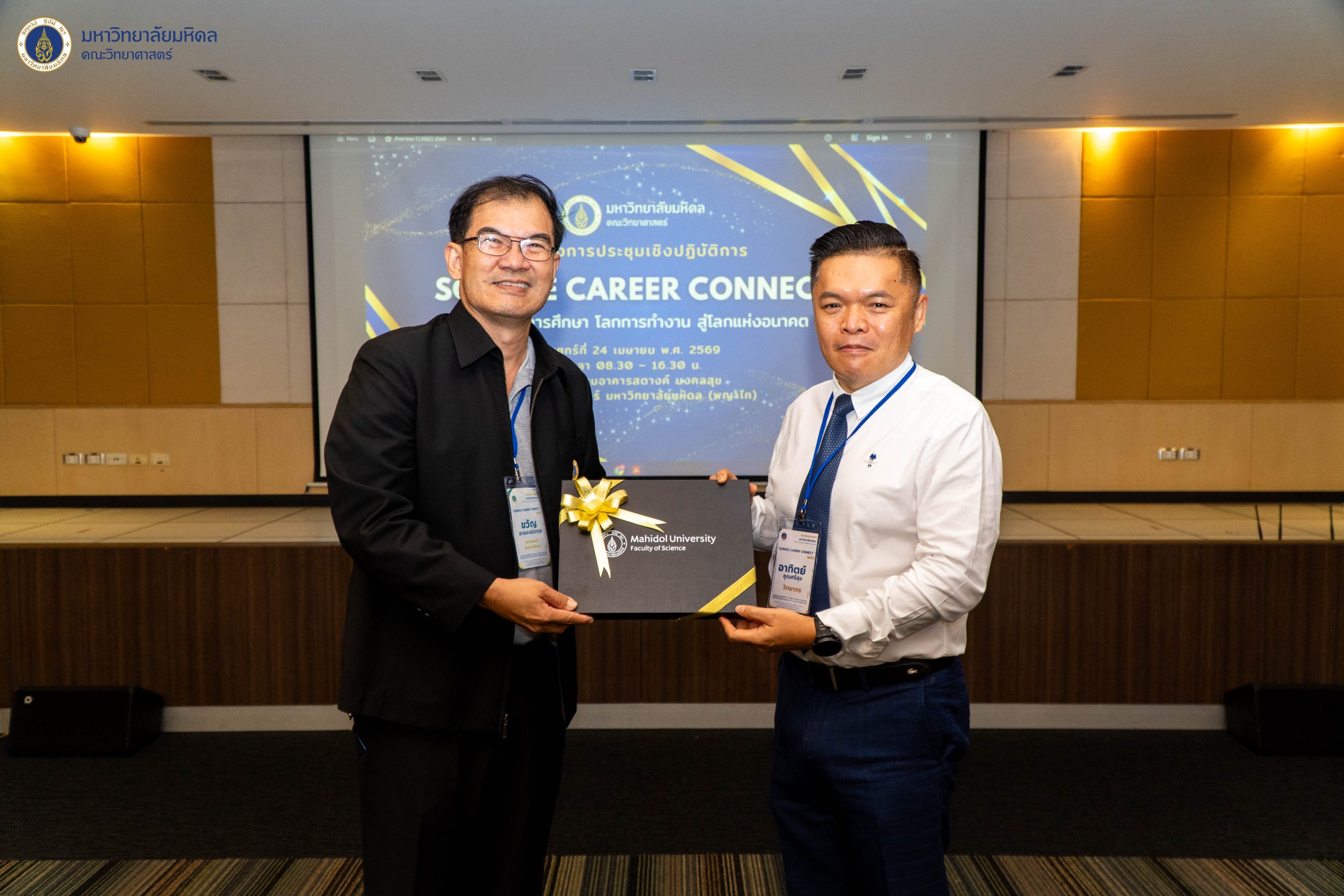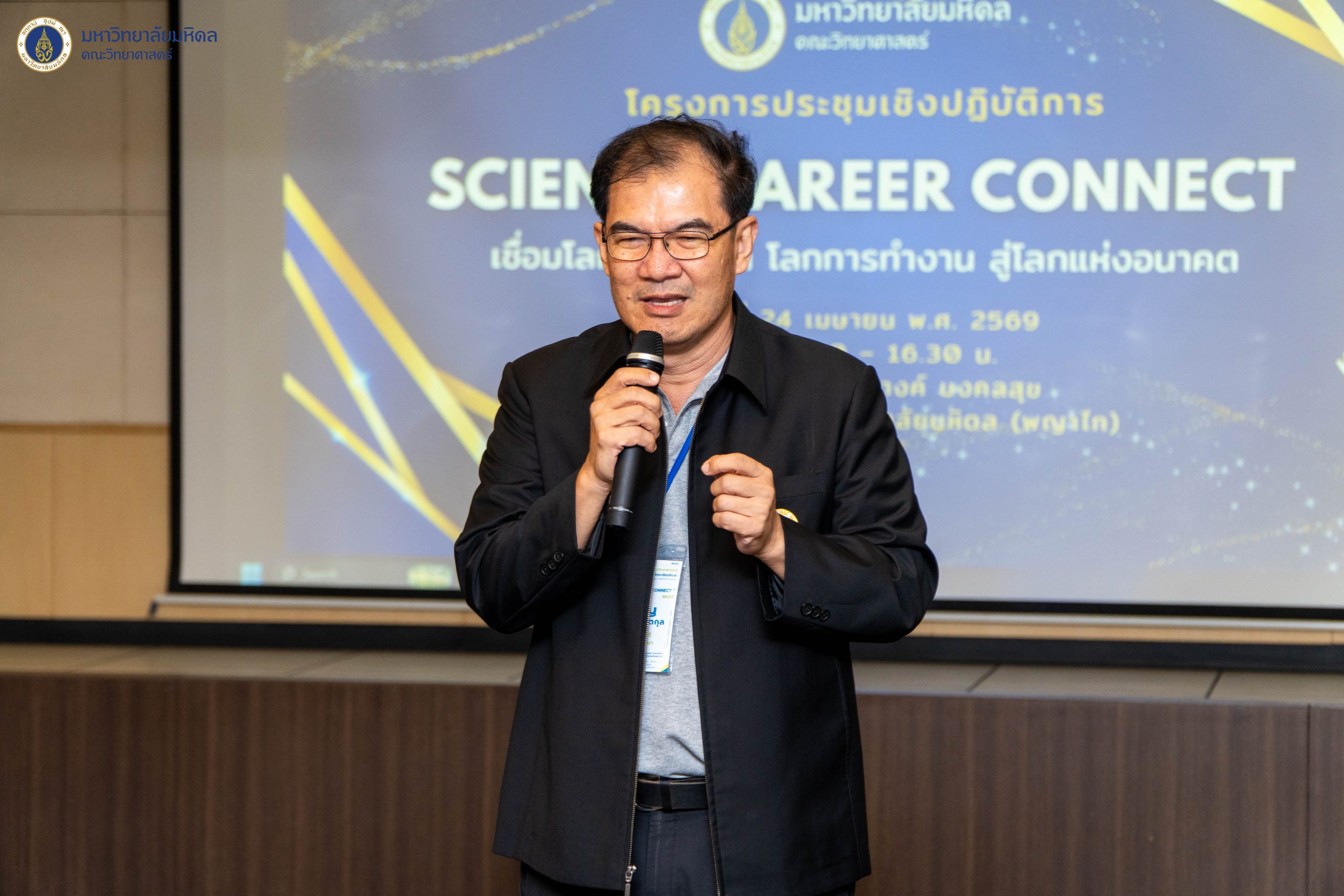 24 เมษายน 2569 คณะวิทยาศาสตร์ มหาวิทยาลัยมหิดล จัดโครงการประชุมเชิงปฏิบัติการ “Science Career Connect: เชื่อมโลกการศึกษาและโลกการทำงาน สู่โลกแห่งอนาคต” ณ ห้องประชุมอาคารสตางค์มงคลสุข (พญาไท) โดยมีผู้บริหาร คณาจารย์คณะวิทยาศาสตร์ และผู้แทนหน่วยงานภาครัฐและภาคเอกชนด้านวิทยาศาสตร์และเทคโนโลยีชั้นนำของประเทศเข้าร่วมอย่างคับคั่ง