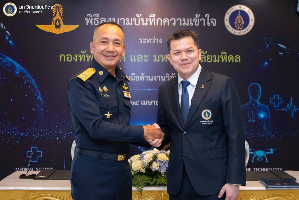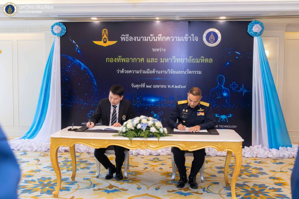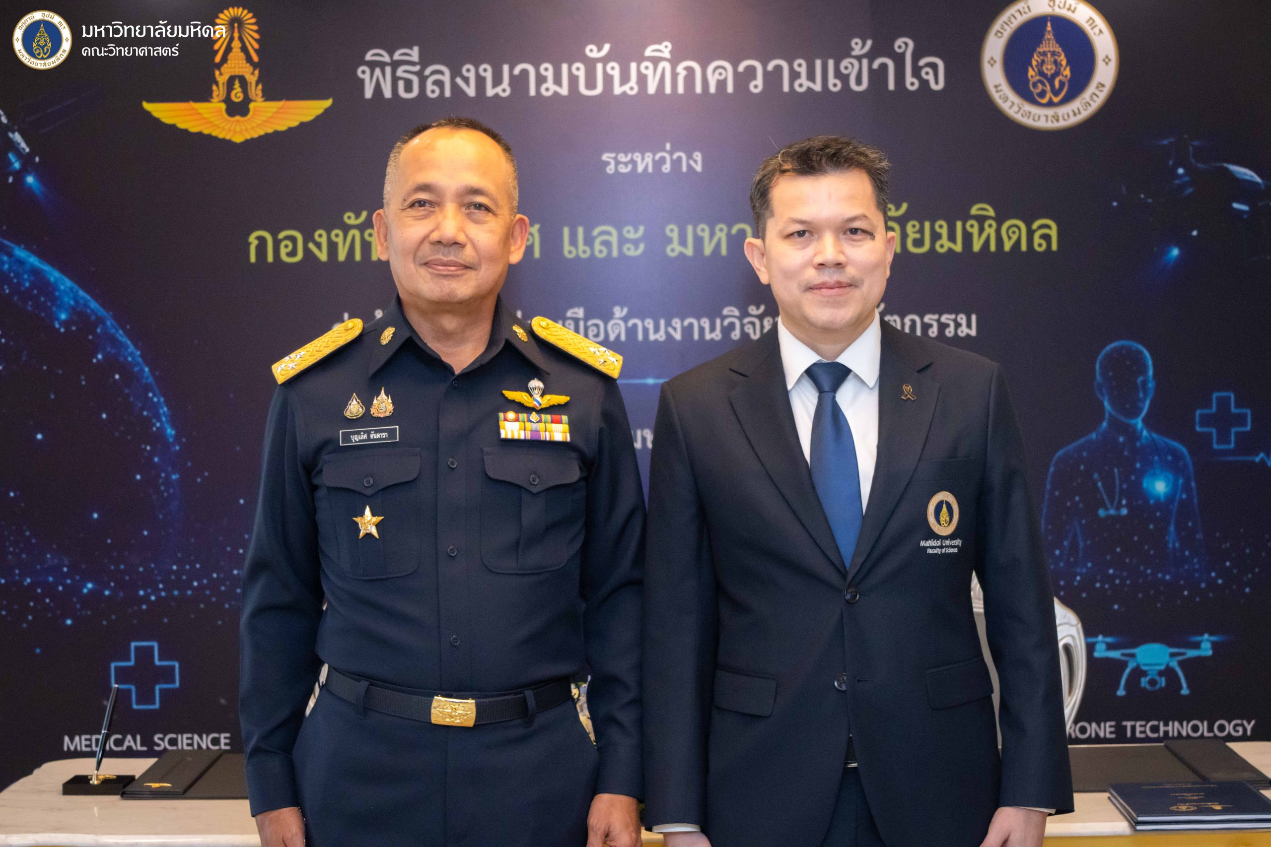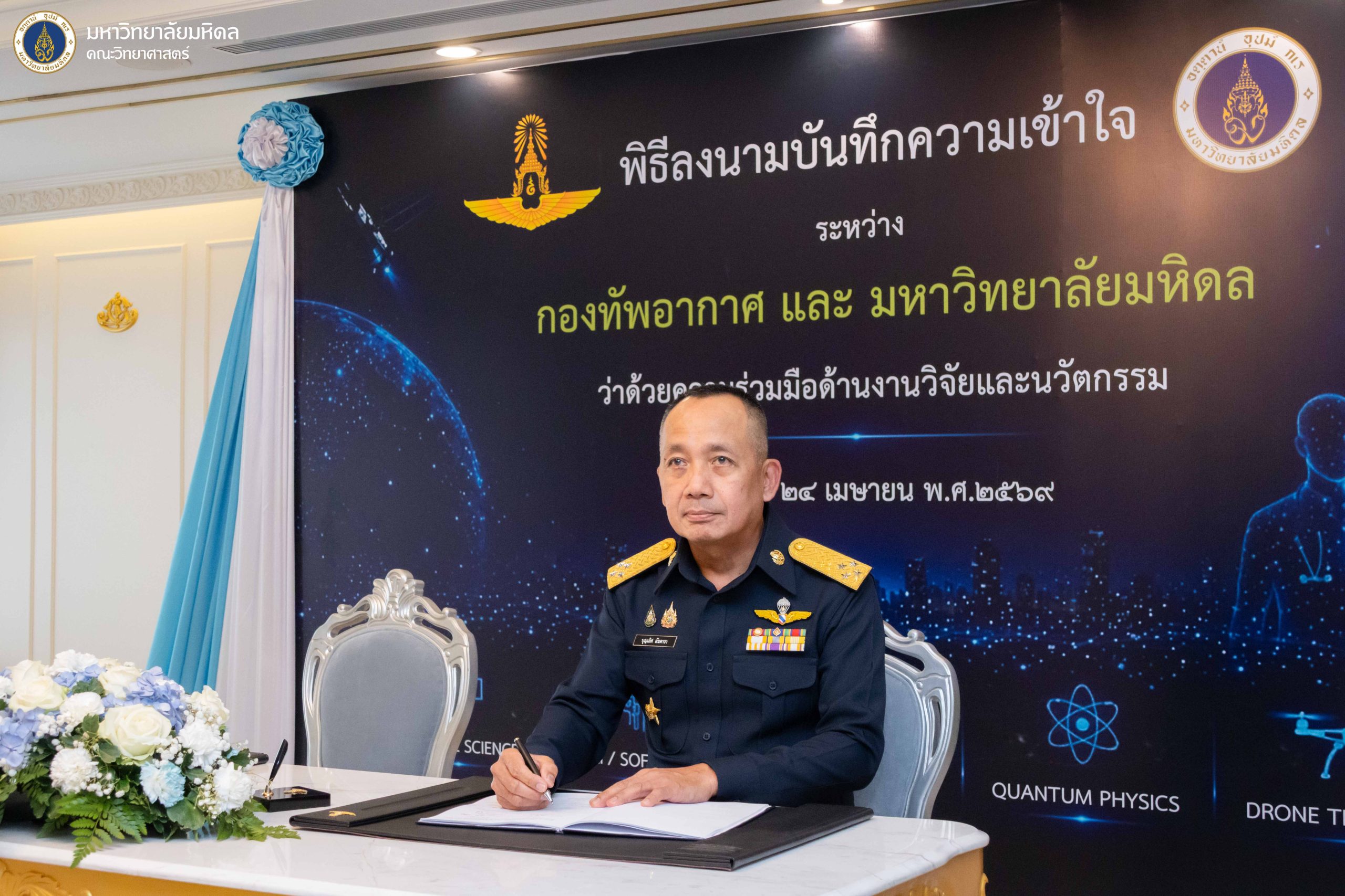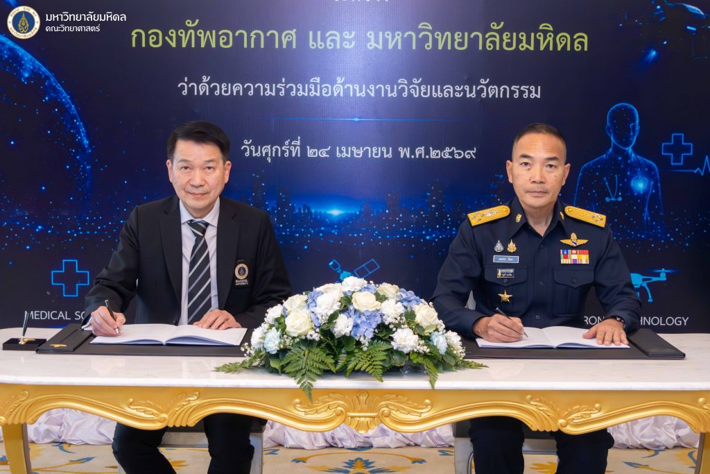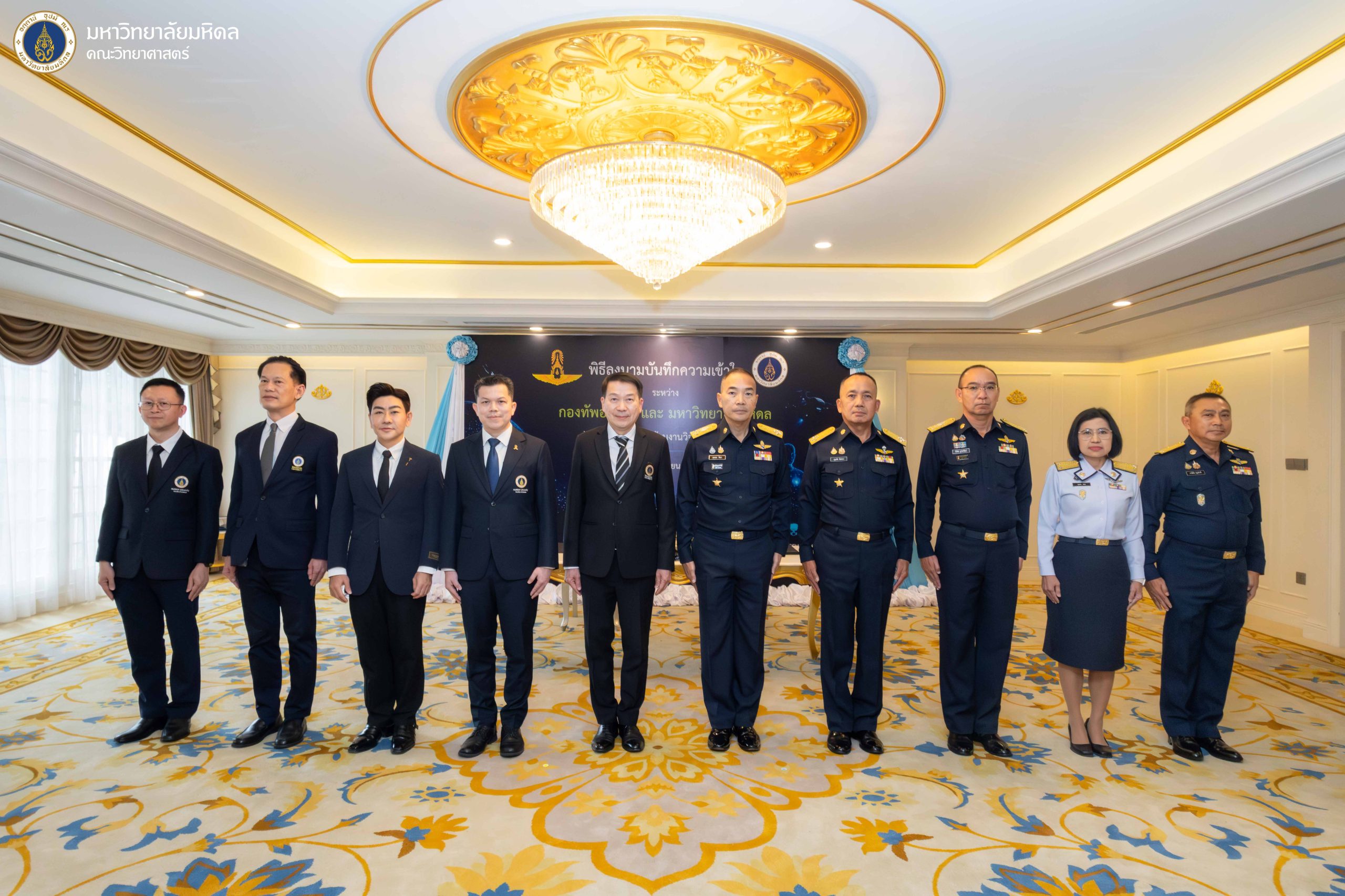 มหาวิทยาลัยมหิดล พร้อมด้วย คณะวิทยาศาสตร์ คณะวิศวกรรมศาสตร์ และคณะเทคโนโลยีสารสนเทศและการสื่อสาร ลงนามบันทึกข้อตกลงความร่วมมือด้านการวิจัยและนวัตกรรม ร่วมกับกองทัพอากาศ เพื่อพัฒนาองค์ความรู้และเทคโนโลยีขั้นสูงด้านความมั่นคง มุ่งสู่การใช้ประโยชน์เชิงปฏิบัติและการพัฒนาประเทศอย่างยั่งยืน