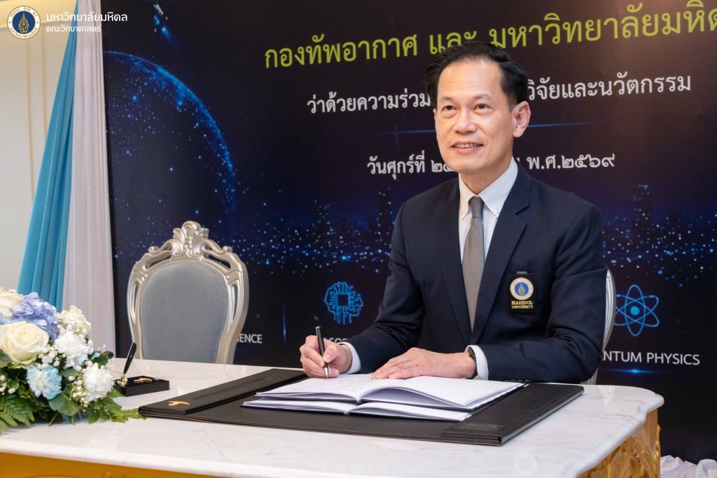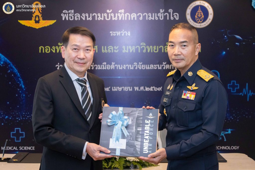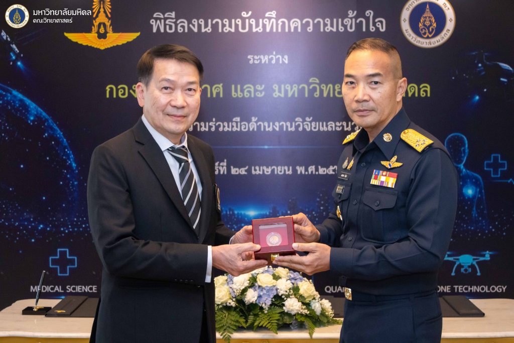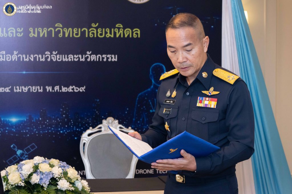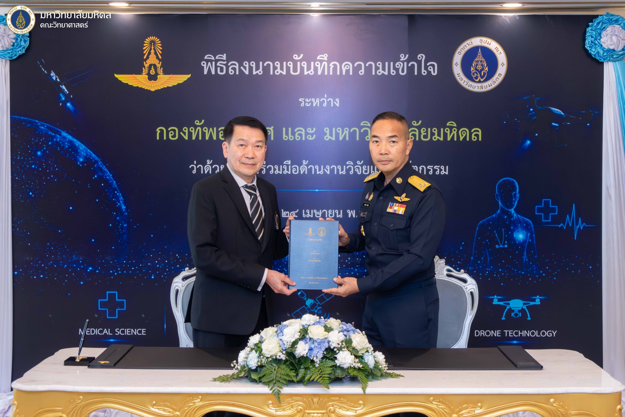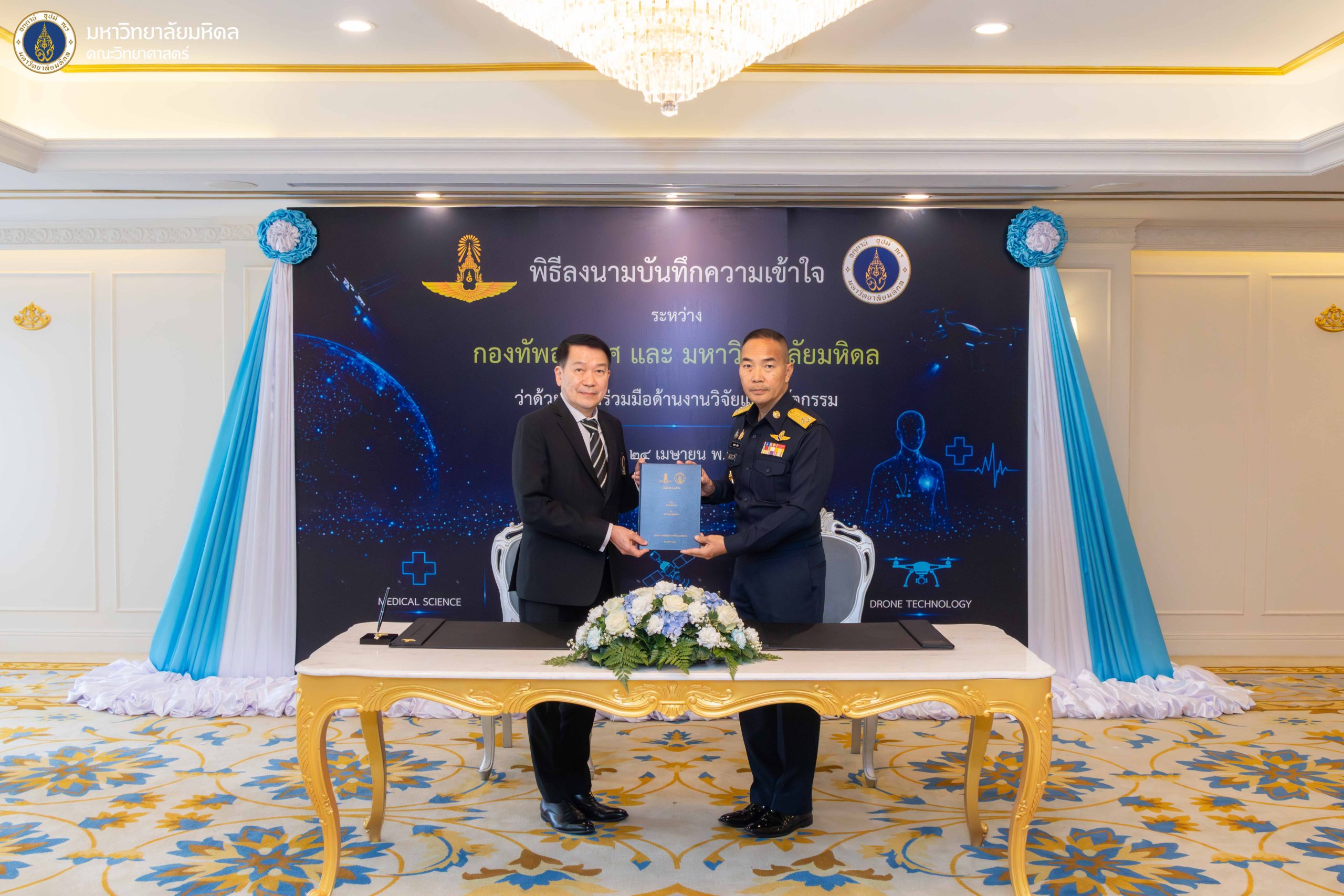มหาวิทยาลัยมหิดล พร้อมด้วย คณะวิทยาศาสตร์ คณะวิศวกรรมศาสตร์ และคณะเทคโนโลยีสารสนเทศและการสื่อสาร ลงนามบันทึกข้อตกลงความร่วมมือด้านการวิจัยและนวัตกรรม ร่วมกับกองทัพอากาศ เพื่อพัฒนาองค์ความรู้และเทคโนโลยีขั้นสูงด้านความมั่นคง มุ่งสู่การใช้ประโยชน์เชิงปฏิบัติและการพัฒนาประเทศอย่างยั่งยืน