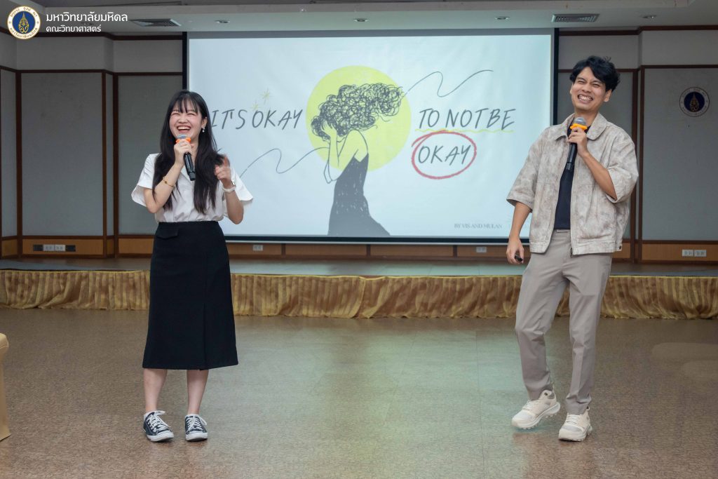 วันที่ 26 พฤศจิกายน 2568 หน่วยบัณฑิตศึกษา งานแพทยศาสตร์และบัณฑิตศึกษา คณะวิทยาศาสตร์ ม.มหิดล ร่วมกับตัวแทนนักศึกษาระดับบัณฑิตศึกษา จัดกิจกรรม Grad Cafe: It’s Okay To not be Okay ซึ่งเป็นกิจกรรมสำหรับบุคลากร คณาจารย์ และนักศึกษาระดับบัณฑิตศึกษา คณะวิทยาศาสตร์ โดยมี คุณวิส ผู้เชี่ยวชาญด้านจิตวิญญาณและศาสตร์แห่งการฮีลใจด้วย Satir Founder of Heal House และคุณมู่หลาน กระบวนกรด้านสุขภาพจิตและจิตวิทยา จบการศึกษาจาก M.Sc. Mental Health จุฬาลงกรณ์มหาวิทยาลัย มาเป็นวิทยากร ณ ห้องประชุม K102 อาคารเฉลิมพระเกียรติ คณะวิทยาศาสตร์ พญาไท        กิจกรรมมีวัตถุประสงค์เพื่อส่งเสริมให้ผู้เข้าร่วม รู้จักและยอมรับตัวเองมากขึ้น รวมถึงเข้าใจว่า “การไม่โอเคก็เป็นเรื่องที่โอเค” (It’s Okay To