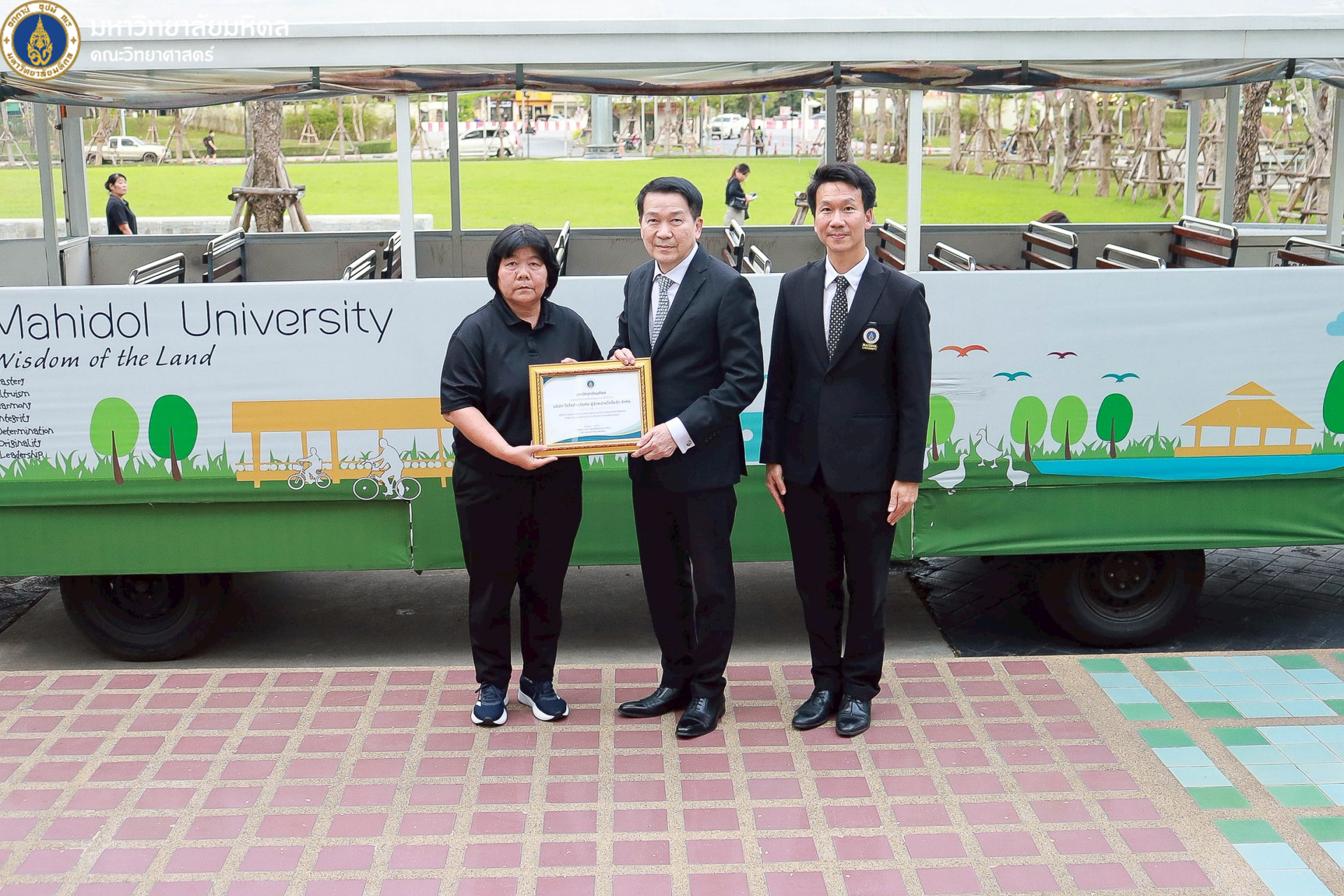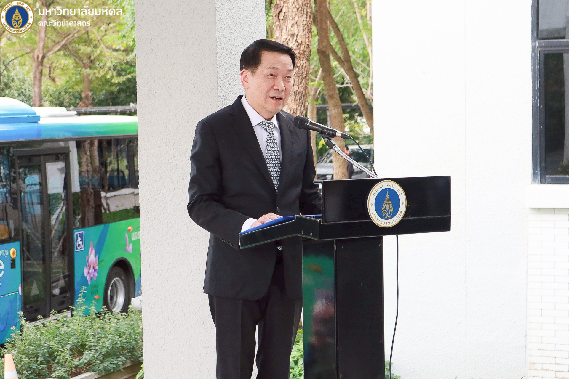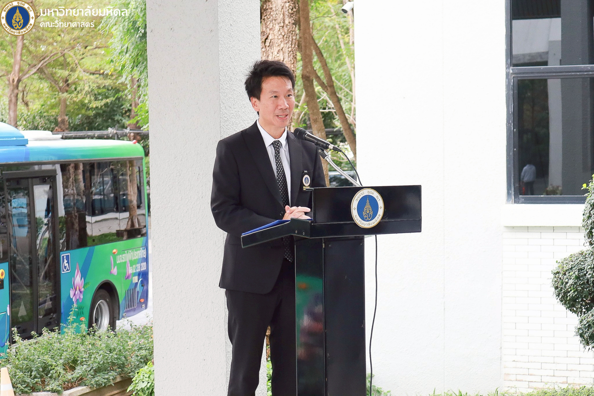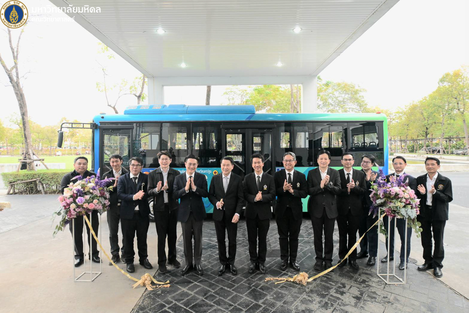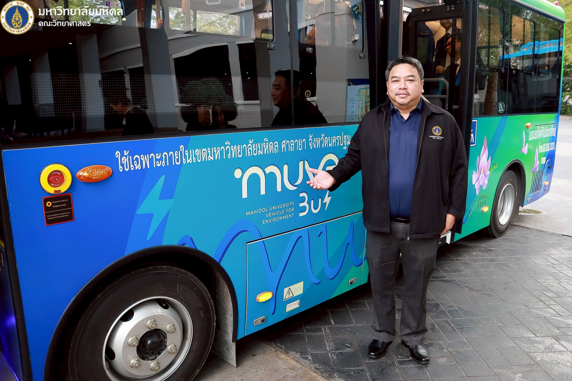 22 ธันวาคม 2568 มหาวิทยาลัยมหิดล นำโดย ศาสตราจารย์ นพ. ปิยะมิตร ศรีธรา อธิการบดี พร้อมด้วยทีมผู้บริหารมหาวิทยาลัย ผู้บริหารส่วนงาน รวมถึงคณะวิทยาศาสตร์ นำโดย คุณปิยะ โพธิ์สิทธิ์ หัวหน้างานศาลายา และรักษาการงานนวัตกรรมการศึกษาและหลักสูตรนานาชาติ เป็นผู้แทนคณบดี ร่วมพิธีเปิดและมอบรางวัลโครงการประกวดตั้งชื่อและออกแบบลวดลายรถบัสพลังงานไฟฟ้า ที่ให้บริการภายในวิทยาเขตศาลายา ซึ่งจัดขึ้นโดยกองกายภาพและสิ่งแวดล้อม เพื่อส่งเสริมให้ประชาคมชาวมหาวิทยาลัยมหิดลทั้งนักศึกษาและบุคลากร เกิดความรู้จัก คุ้นเคย และมีส่วนร่วมกับการใช้บริการรถบัสพลังงานไฟฟ้า รวมถึงสร้างภาพลักษณ์ที่ดีและเป็นเอกลักษณ์ให้แก่รถบัสพลังงานไฟฟ้าภายในมหาวิทยาลัย ณ บริเวณด้านหน้าอาคารสำนักงานอธิการบดี มหาวิทยาลัยมหิดล ศาลายา