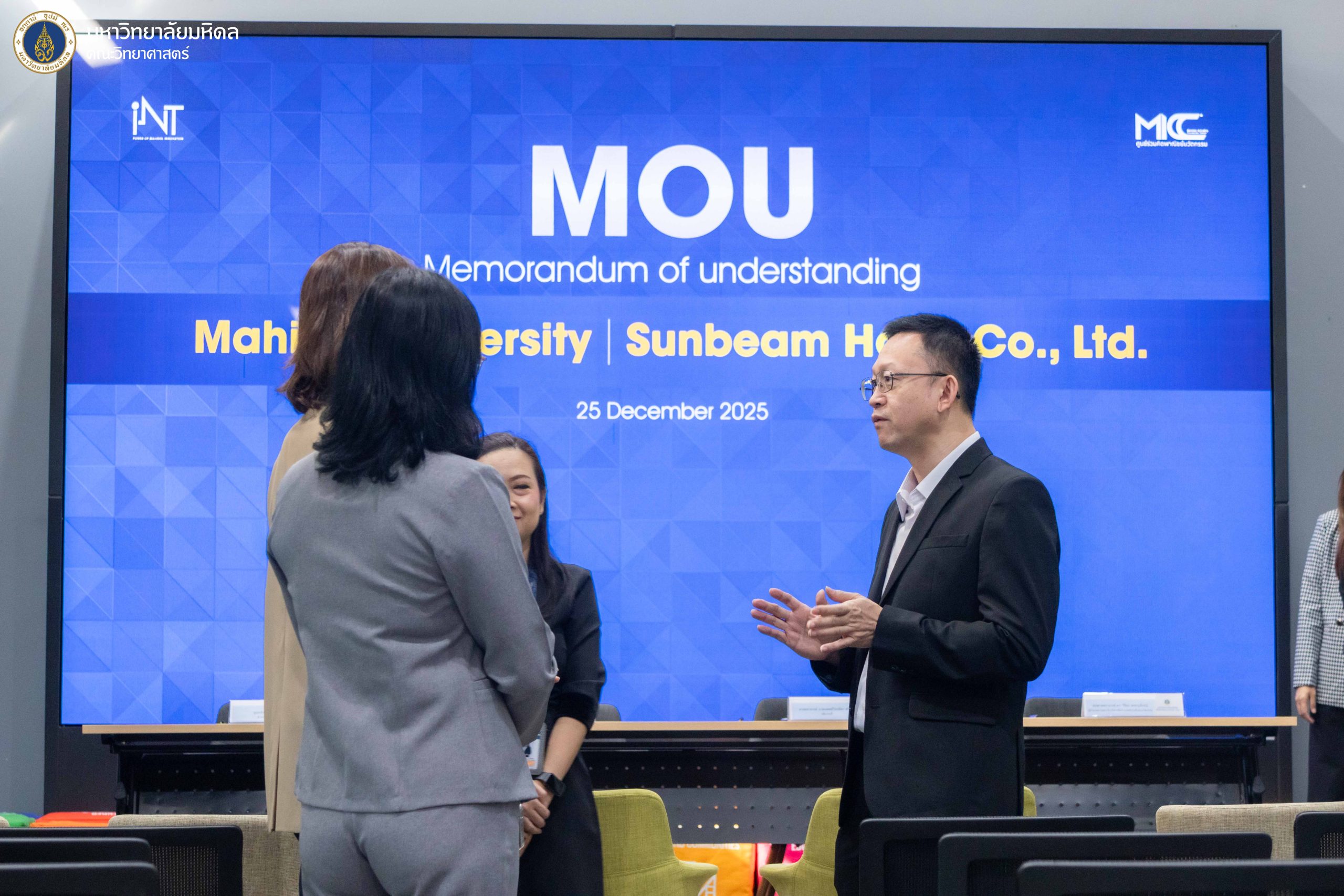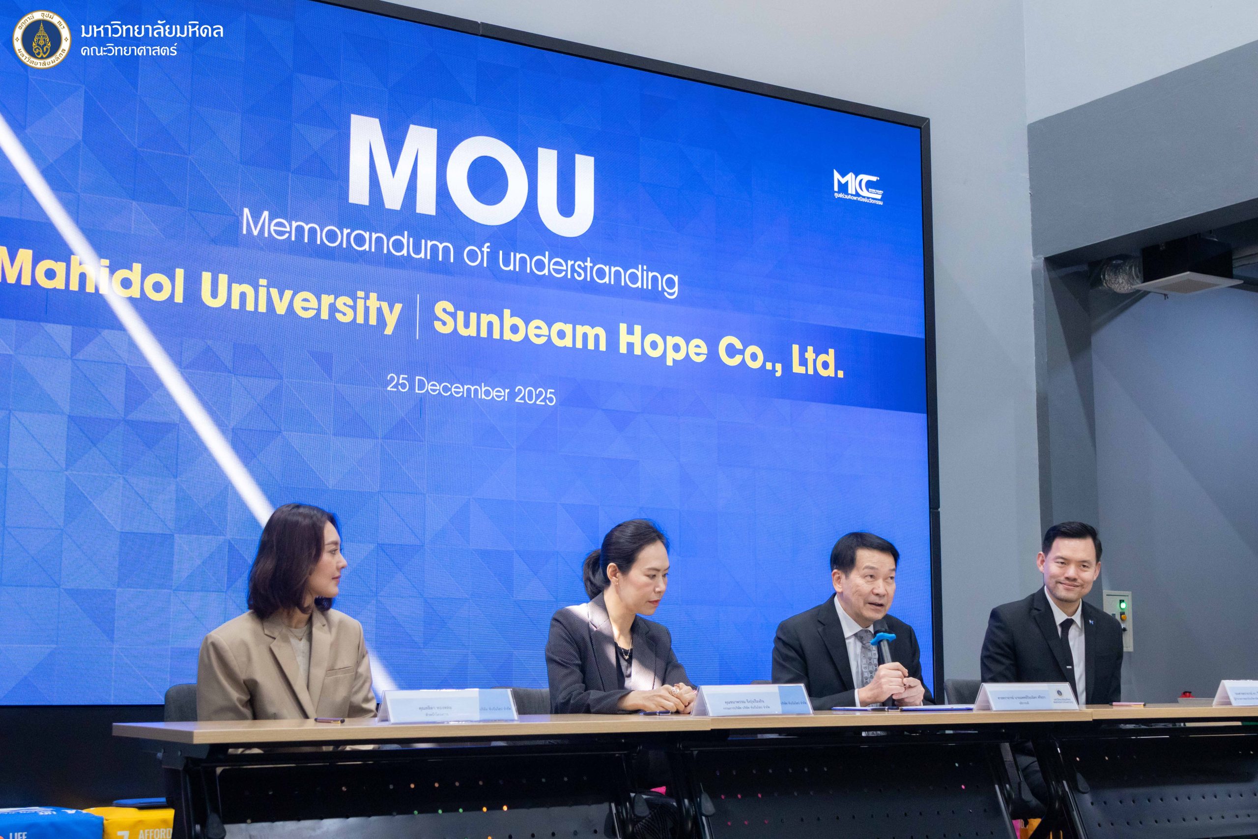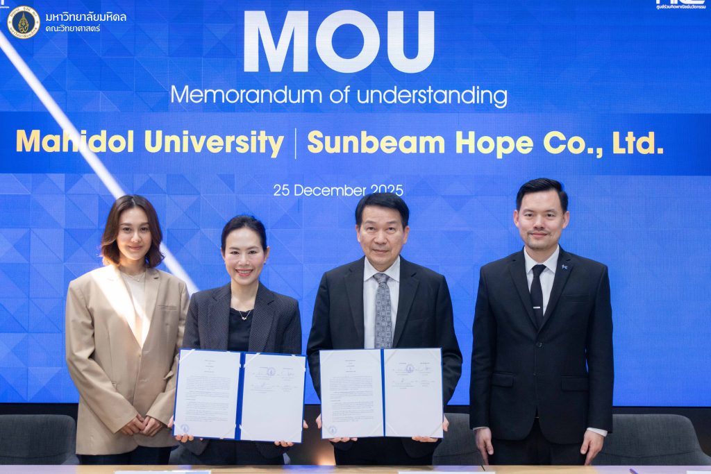 25 ธันวาคม 2568 คณะวิทยาศาสตร์ ร่วมเป็นเกียรติในพิธีลงนามบันทึกความเข้าใจร่วมกันระหว่าง มหาวิทยาลัยมหิดลกับบริษัท ซันบีมโฮป จำกัด ซึ่งจัดขึ้นโดยสถาบันบริหารจัดการเทคโนโลยีและนวัตกรรม ณ MaShares Co-Working Space @MB มหาวิทยาลัยมหิดล ศาลายา