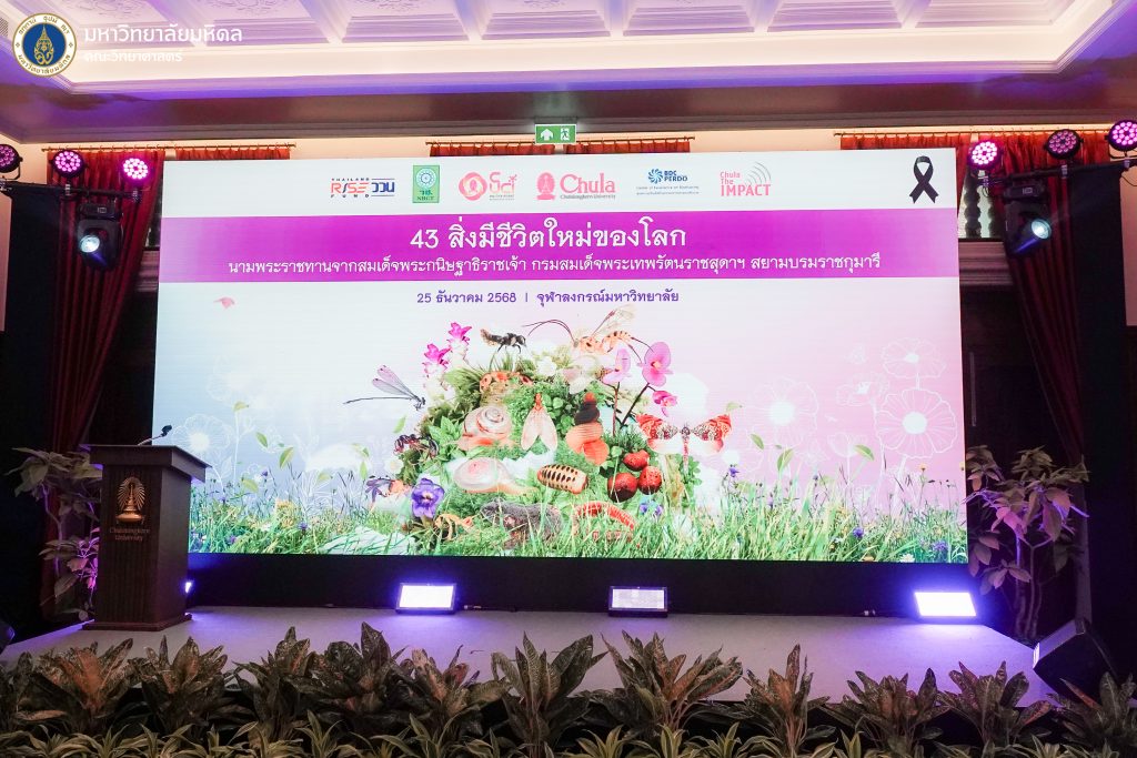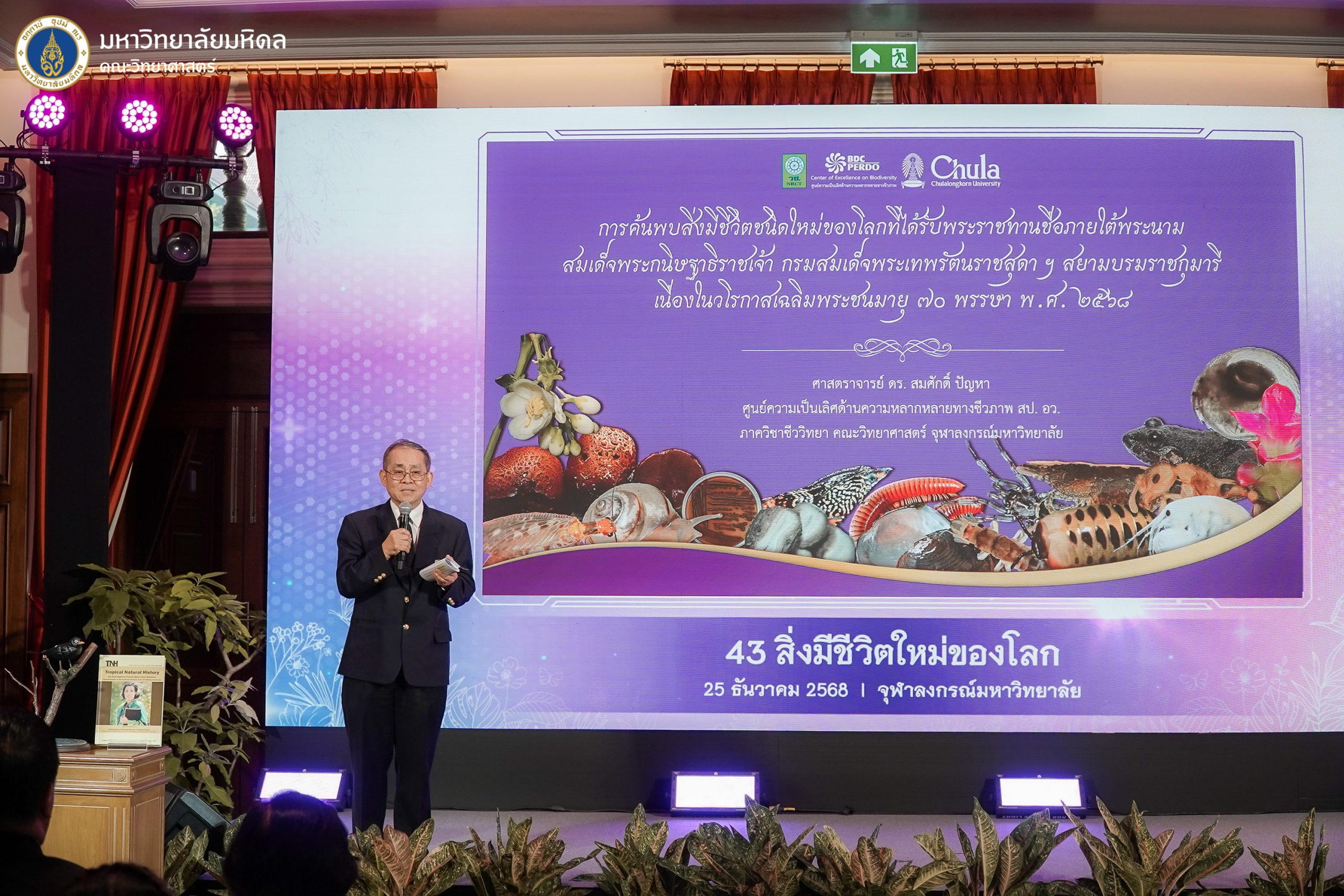 ในโอกาสนี้ทาง ศูนย์ความเป็นเลิศด้านความหลากหลายทางชีวภาพร่วมกับภาควิชาชีววิทยา คณะวิทยาศาสตร์ จุฬาลงกรณ์มหาวิทยาลัย จึงได้มีการจัดงาน Chula the Impact ครั้งที่ 36 เรื่อง “43 สิ่งมีชีวิตใหม่ของโลก” นามพระราชทานจากสมเด็จพระกนิษฐาธิราชเจ้า กรมสมเด็จพระเทพรัตนราชสุดา ฯ สยามบรมราชกุมารี ในวันที่ 25 ธันวาคม 2568 ณ ห้อง 111 อาคารมหาจุฬาลงกรณ์ จุฬาลงกรณ์มหาวิทยาลัย ซึ่งเป็นการแถลงข่าวการค้นพบสิ่งมีชีวิตชนิดใหม่ของโลกที่ค้นพบในประเทศไทยจำนวน 43 ชนิด และได้รับพระราชทานชื่อวิทยาศาสตร์ภายใต้พระนามของสมเด็จพระกนิษฐาธิราชเจ้า กรมสมเด็จพระเทพรัตนราชสุดา ฯ สยามบรมราชกุมารี เนื่องในโอกาสมหามงคลเฉลิมพระชนมายุ 70 พรรษา พุทธศักราช 2568 ภายใต้ความร่วมมือจาก 45 สถาบัน แบ่งเป็น 31 สถาบันภายในประเทศไทย และ 14 สถาบันในต่างประเทศ