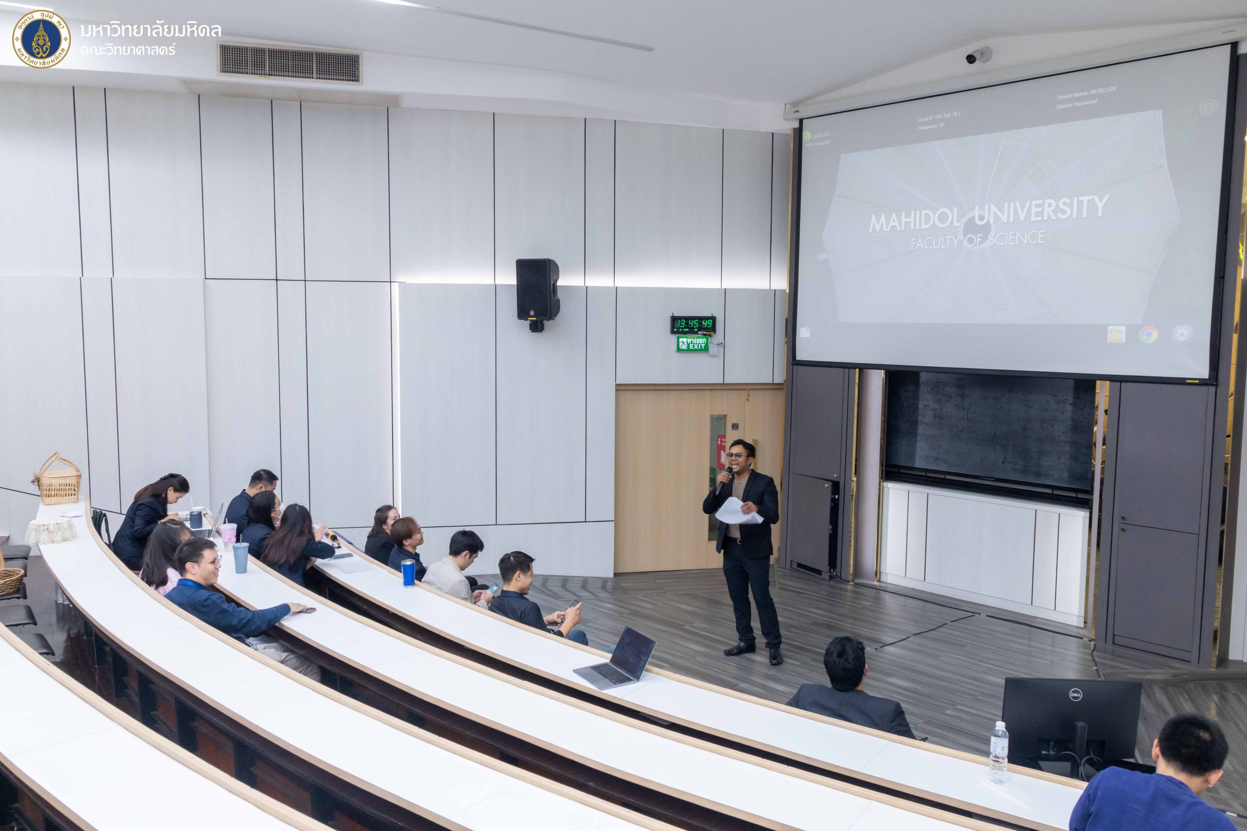 - รศ. ดร.ธันฐภัทร์ บุญช่วย ภาควิชาเคมี คณะวิทยาศาสตร์ มหาวิทยาลัยมหิดล นำเสนอเรื่อง เคมีและวัสดุศาสตร์ที่ถือกำเนิดใหม่เพื่อการพัฒนาอย่างยั่งยืน: จากภาควิชาเคมีสู่ Real-World Impact