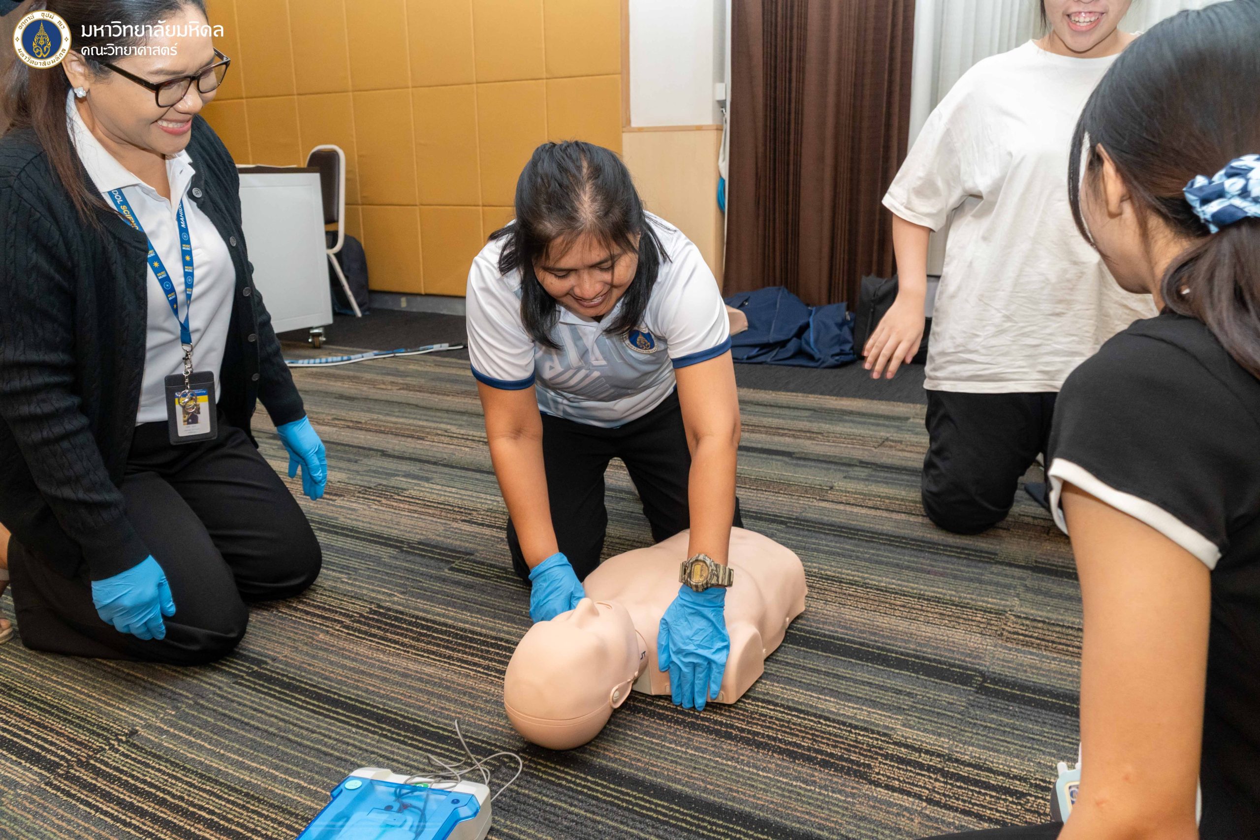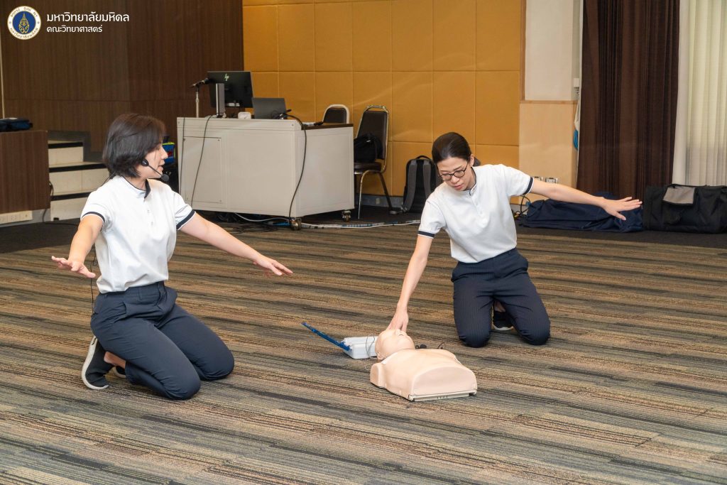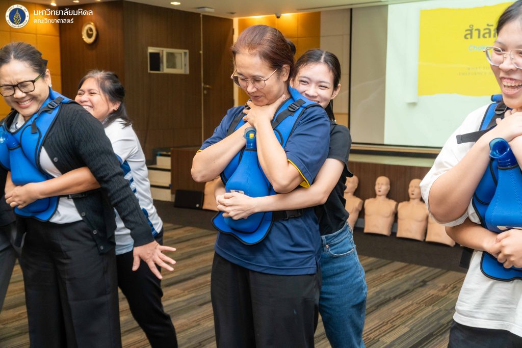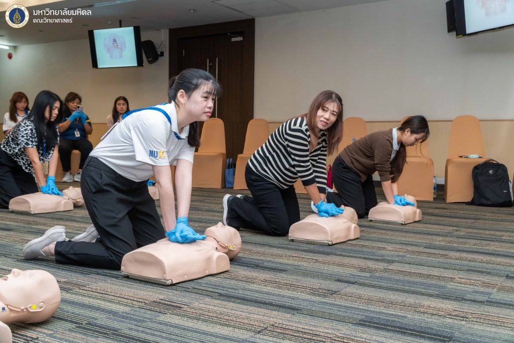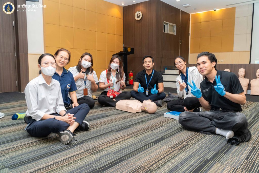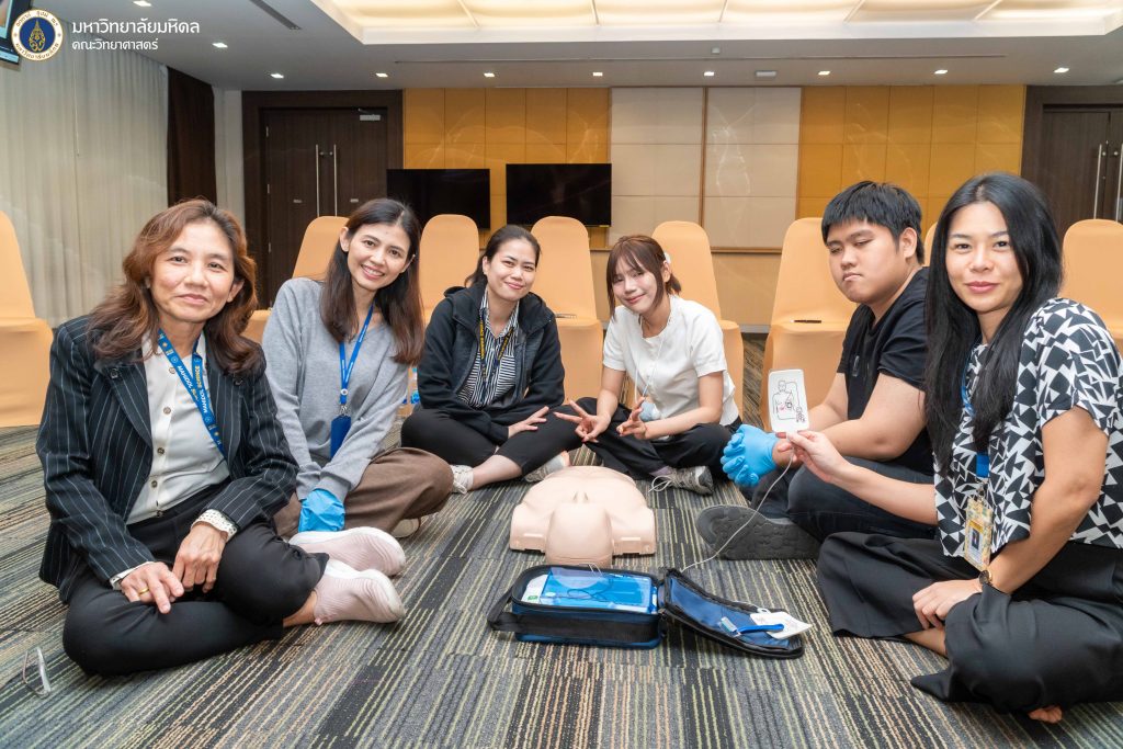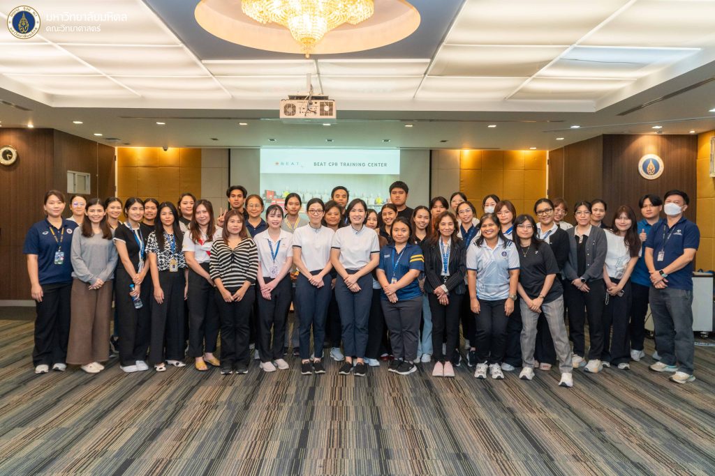 5 กุมภาพันธ์ 2569 งานบริหารและธุรการ คณะวิทยาศาสตร์ มหาวิทยาลัยมหิดล จัดโครงการ ฝึกอบรมเชิงปฏิบัติการการช่วยชีวิตขั้นพื้นฐาน และการปฐมพยาบาลเบื้องต้น ประจำปี 2569 ครั้งที่ 1 โดยได้รับเกียรติจากทีม BEAT CPR TRAINING CENTER มาเป็นวิทยากรให้ความรู้ ณ ห้องประชุมอาคารสตางค์ มงคลสุข คณะวิทยาศาสตร์ มหาวิทยาลัยมหิดล พญาไท ซึ่งการจัดอบรมในครั้งนี้มีวัตถุประสงค์เพื่อส่งเสริมให้บุคลากรและนักศึกษาภายในคณะวิทยาศาสตร์ ได้ตระหนักและเล็งเห็นถึงความสำคัญขององค์ความรู้ในการช่วยเหลือผู้ที่เกิดภาวะสิ่งแปลกปลอมอุดกั้นทางเดินหายใจ และการช่วยเหลือจากภาวะหัวใจหยุดเต้นด้วยการทำ CPR การใช้เครื่อง AED การตระหนักถึงความอันตรายของการเกิดภาวะสิ่งแปลกปลอมอุดกั้นทางเดินหายใจ และภาวะสมองขาดออกซิเจน อีกทั้งยังเพื่อเป็นการระดมความร่วมมือสำหรับบุคลากรภายในให้เข้ามามีส่วนร่วมในการสร้างความตระหนัก และร่วมพัฒนาในด้านของการนำองค์ความรู้ที่ได้ไปใช้เผยแพร่ได้อย่างถูกต้อง ตลอดจนนำไปสู่การประยุกต์ใช้ในการช่วยเหลือผู้ที่เกิดภาวะหัวใจหยุดเต้น และผู้ที่เกิดภาวะสิ่งแปลกปลอมอุดกั้นทางเดินหายใจในสถานการณ์ต่าง ๆ ได้ต่อไป ซึ่งมีประเด็นหัวข้อในการอบรมดังนี้