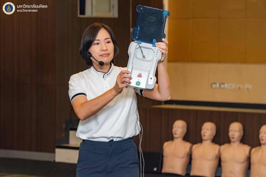 • การใช้เครื่อง AED (เครื่องกระตุกคลื่นไฟฟ้าหัวใจอัตโนมัติ) ร่วมกับการทำ CPR อย่างถูกต้องรวมไปถึงการดูแลรักษาเครื่อง