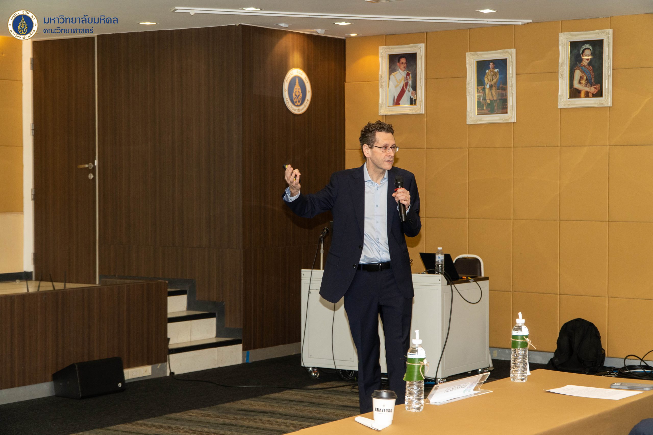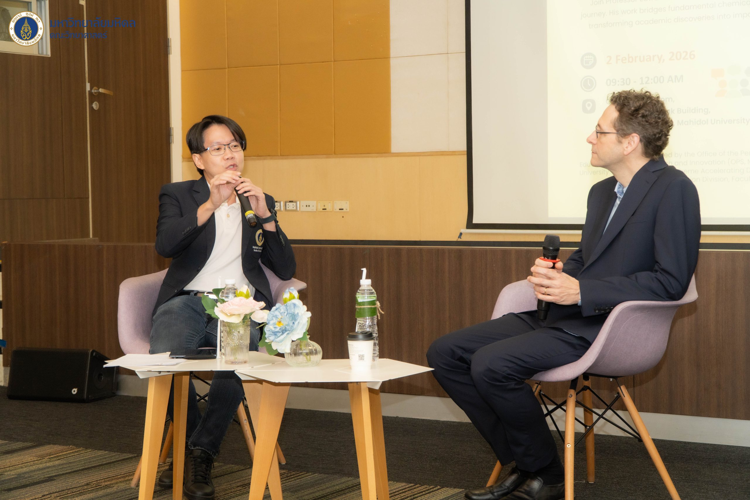 2 กุมภาพันธ์ 2569 คณะวิทยาศาสตร์ มหาวิทยาลัยมหิดล จัดสัมมนาเชิงวิชาการ ภายใต้หัวข้อ “Turning Scientific Research into a Company : Lessons from the Translational Journey” ณ ห้องประชุมอาคารสตางค์ มงคลสุข คณะวิทยาศาสตร์ มหาวิทยาลัยมหิดล พญาไท โดยมี สำนักงานปลัดกระทรวงการอุดมศึกษา วิทยาศาสตร์ วิจัยและนวัตกรรม เป็นผู้สนับสนุนภายใต้โครงการ Visiting Professor ด้านการค้นหาและพัฒนายา (Drug Discovery and Development) ซึ่งเป็นกลไกสำคัญภายใต้ ข้อเสนอโครงการพัฒนาความเป็นเลิศของสถาบันอุดมศึกษาและพัฒนากำลังคนขั้นสูง (Reinventing University) ประจำปีงบประมาณ พ.ศ. 2568 ในกลุ่มพัฒนาการวิจัยระดับแนวหน้าของโลก โดยมีเป้าหมายเพื่อยกระดับศักยภาพการวิจัยของประเทศไทยสู่มาตรฐานสากล และสร้างฐานความเป็นเลิศด้านการค้นหาและพัฒนายา ซึ่งเป็นสาขายุทธศาสตร์ที่มีความสำคัญต่อความมั่นคงด้านสุขภาพและการพัฒนาเศรษฐกิจฐานความรู้ของประเทศ
