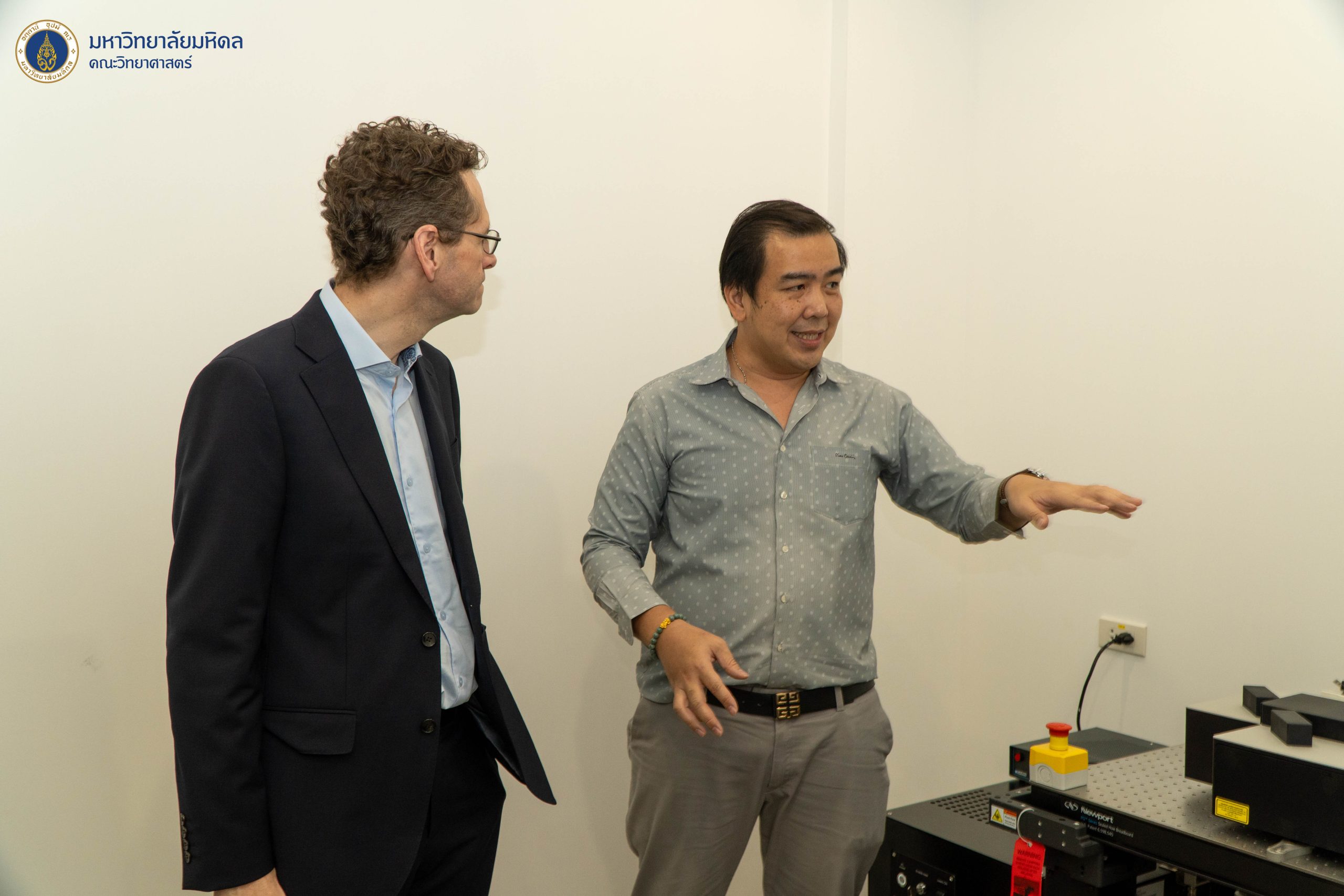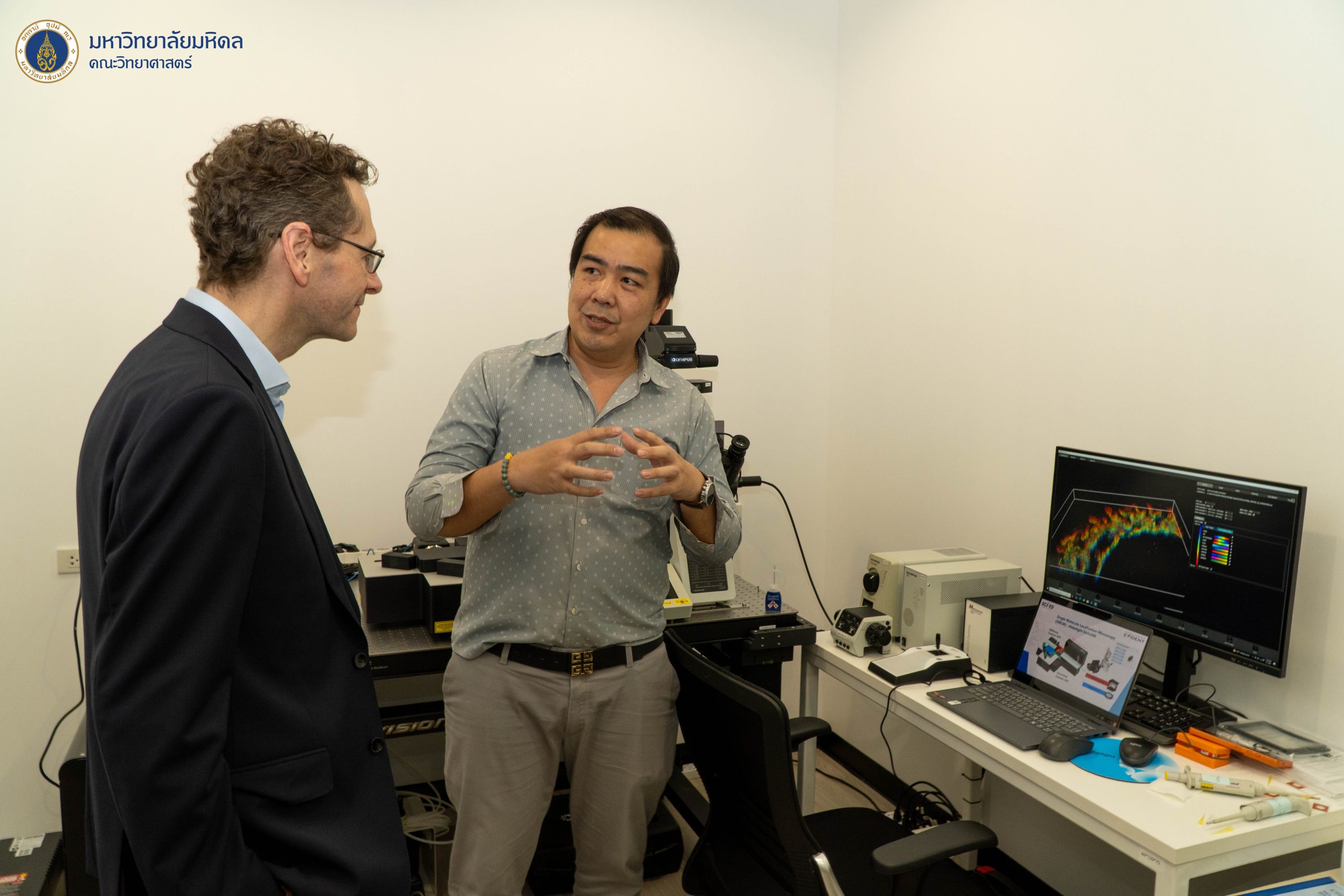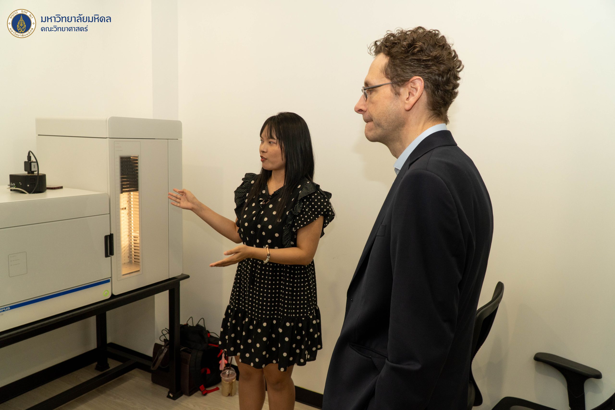 โดยภายในงานได้รับเกียรติจาก รองศาสตราจารย์ ดร.พสิษฐ์ ภควัชร์ภาณุรัตน์ รองคณบดีฝ่ายวิจัยและนวัตกรรม มาร่วมเป็นประธานกล่าวเปิดงาน พร้อมด้วย Prof. Edward W. Tate : GSK Chair in Chemical Biology, Imperial College London United Kingdom ที่มาร่วมเป็นวิทยากร โดยมี รองศาสตราจารย์ ดร.ปฐมพล วงศ์ตระกูลเกตุ ผู้ช่วยคณบดีฝ่ายวิจัยและนวัตกรรม เป็นผู้ดำเนินรายการ อีกทั้งยังได้มีการร่วมเยี่ยมชมและศึกษาดูงานศูนย์วิจัย Mahidol–Evident Bioimaging Center (EBC) ซึ่งเป็นศูนย์เครื่องมือและโครงสร้างพื้นฐานวิจัยที่สำคัญของคณะวิทยาศาสตร์ อันแสดงให้เห็นถึงศักยภาพด้านวิทยาศาสตร์พื้นฐานที่สนับสนุนงานวิจัยทางการแพทย์และสุขภาพในระดับสากล