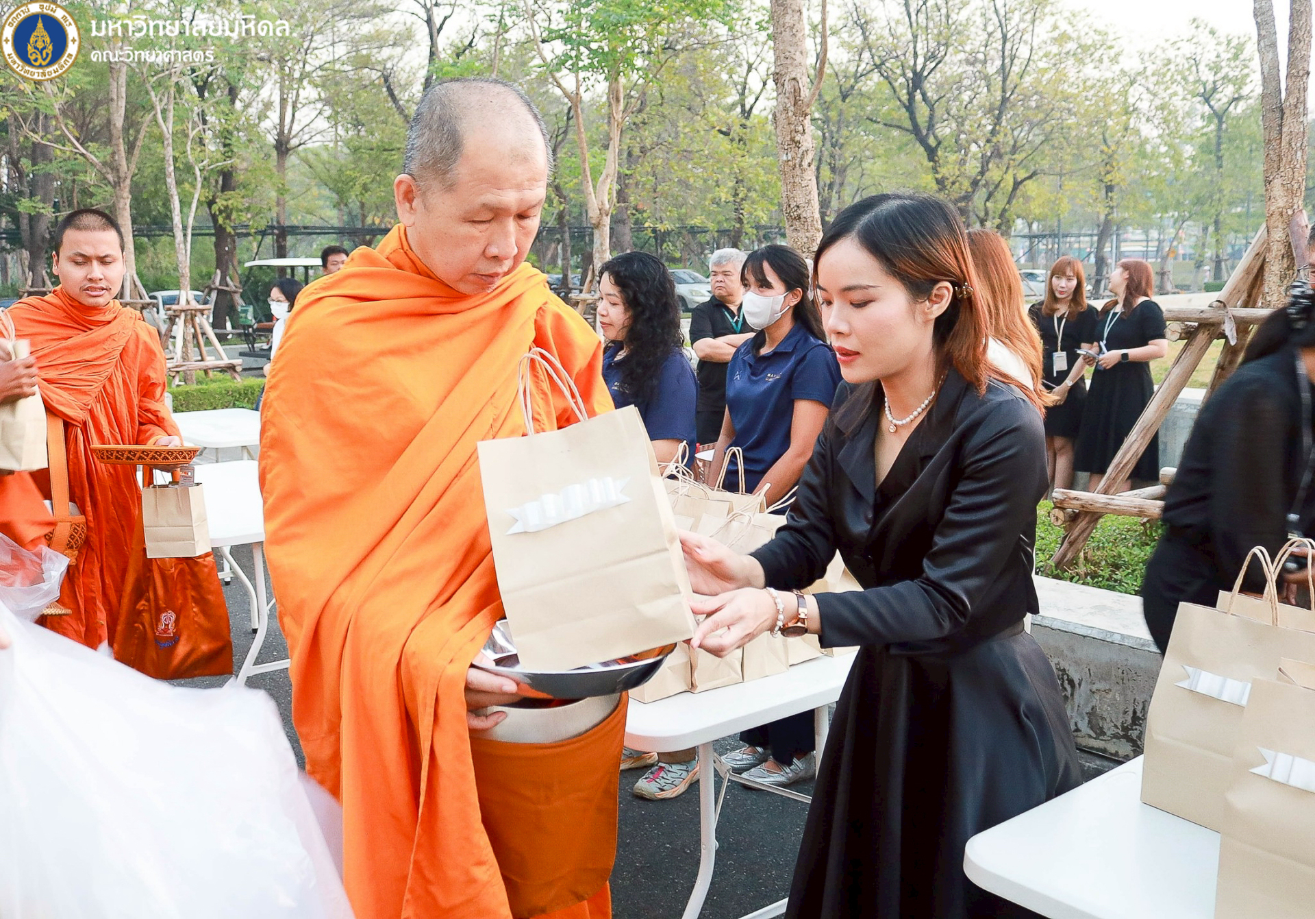 30 มกราคม 2569 มหาวิทยาลัยมหิดล นำโดย ศาสตราจารย์ นพ. ปิยะมิตร ศรีธรา อธิการบดีมหาวิทยาลัยมหิดล พร้อมด้วยทีมผู้บริหารมหาวิทยาลัย ผู้บริหารคณะ ส่วนงาน และคณะวิทยาศาสตร์ มหาวิทยาลัยมหิดล นำโดย รองศาสตราจารย์ ดร.วัฒนา วีรชาติยานุกูล รองคณบดีฝ่ายวิชาการและศาลายา อาจารย์ ดร.นิศามณี เจริญชนม์ ผู้ช่วยคณบดีฝ่ายหลักสูตรนานาชาติ อาจารย์ ดร.ธิติคม พัวพันสวัสดิ์ ประธานสภาคณาจารย์มหาวิทยาลัยมหิดล มหาวิทยาลัยมหิดล พร้อมด้วยบุคลากรงานศาลายา พร้อมใจร่วมพิธีทำบุญตักบาตรถวายเป็นพระราชกุศล พระสงฆ์ จำนวน 30 รูป บริเวณด้านหน้าสำนักงานอธิการบดี ต่อด้วยพิธีบำเพ็ญกุศล 100 วันอุทิศถวายแด่ สมเด็จพระนางเจ้าสิริกิติ์พระบรมราชินีนาถ พระบรมราชชนนีพันปีหลวง ณ บริเวณโถง ชั้น 1 สำนักงานอธิการบดี มหาวิทยาลัยมหิดล ศาลายา