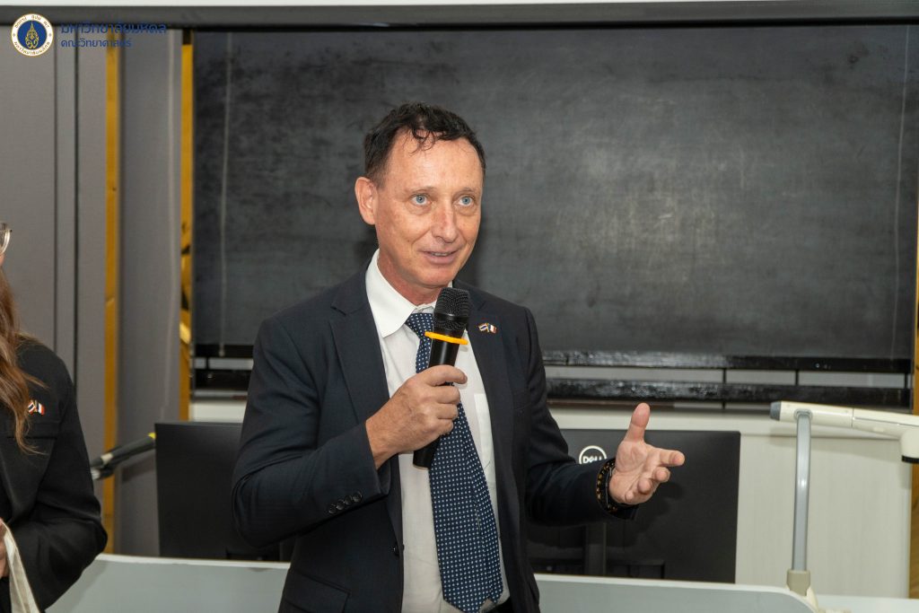วันที่ 7 มกราคม 2569 คณะวิทยาศาสตร์ ร่วมกับกองวิเทศสัมพันธ์ มหาวิทยาลัยมหิดล นำโดย รองศาสตราจารย์ ดร. พสิษฐ์ ภควัชร์ภาณุรัตน์ รองคณบดีฝ่ายวิจัยและนวัตกรรม จัดกิจกรรม Campus Tour Mahidol 2025–2026 ระหว่างเวลา 13.00–16.00 น. ณ ห้องบรรยาย L05 คณะวิทยาศาสตร์ มหาวิทยาลัยมหิดล (วิทยาเขตพญาไท) เพื่อประชาสัมพันธ์ข้อมูลด้านการศึกษาต่อ ทุนการศึกษา และโอกาสด้านความร่วมมือทางวิชาการในระดับนานาชาติ ณ ประเทศสาธารณรัฐฝรั่งเศส