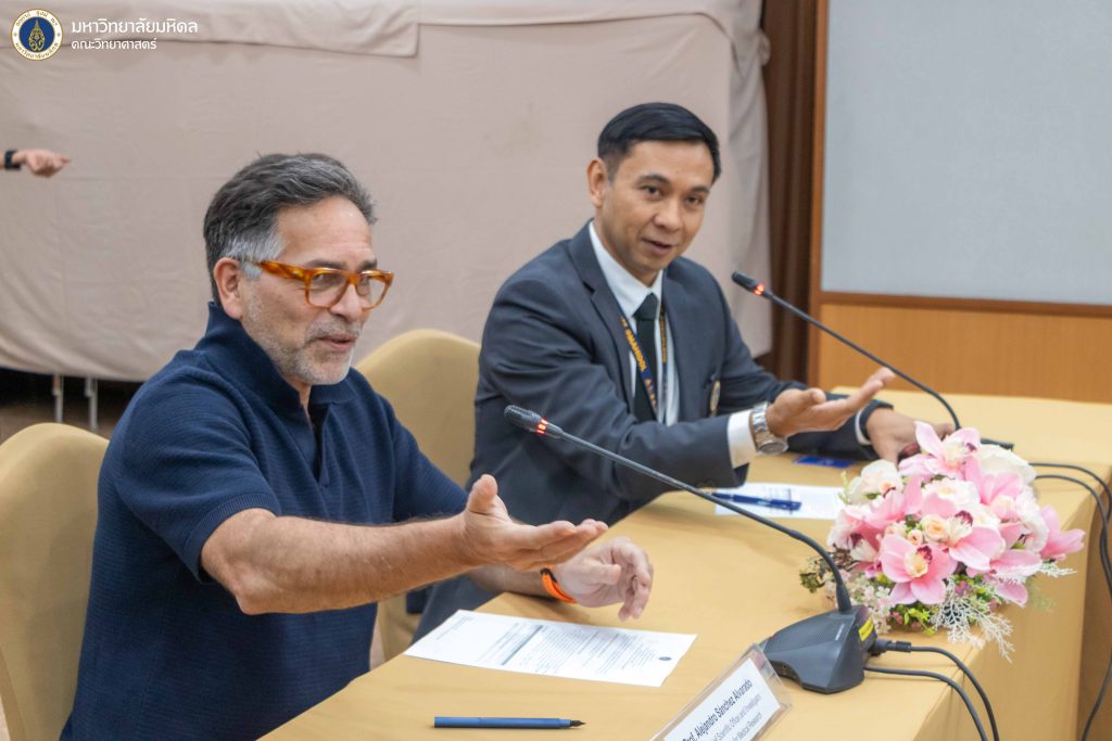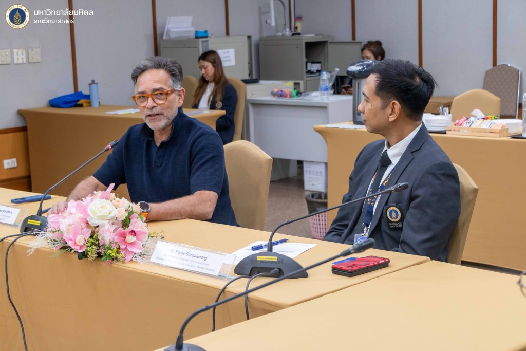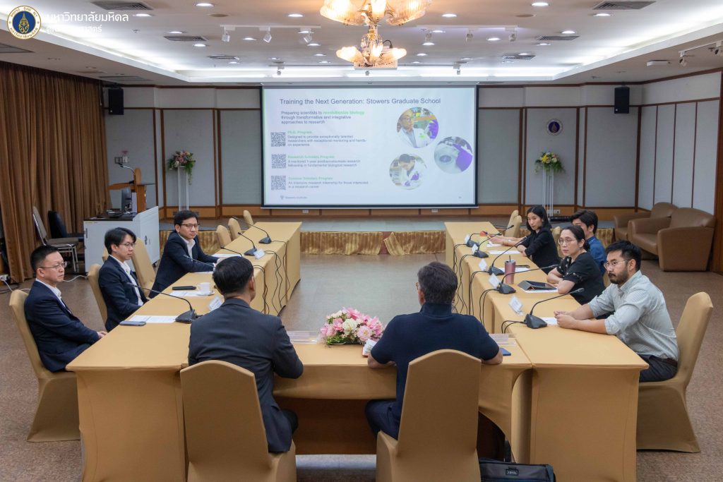 วันที่ 8 มกราคม 2569 คณะวิทยาศาสตร์ มหาวิทยาลัยมหิดล นำโดย ดร. นิศามณี เจริญชนม์ ผู้ช่วยคณบดีฝ่ายหลักสูตรนานาชาติ ให้การต้อนรับผู้แทนจาก Stowers Institute for Medical Research สหรัฐอเมริกา ในโอกาสเดินทางมาเยือนคณะวิทยาศาสตร์ และเข้าร่วมกิจกรรมทางวิชาการ ณ ห้อง K102 อาคารเฉลิมพระเกียรติ คณะวิทยาศาสตร์ มหาวิทยาลัยมหิดล วิทยาเขตพญาไท