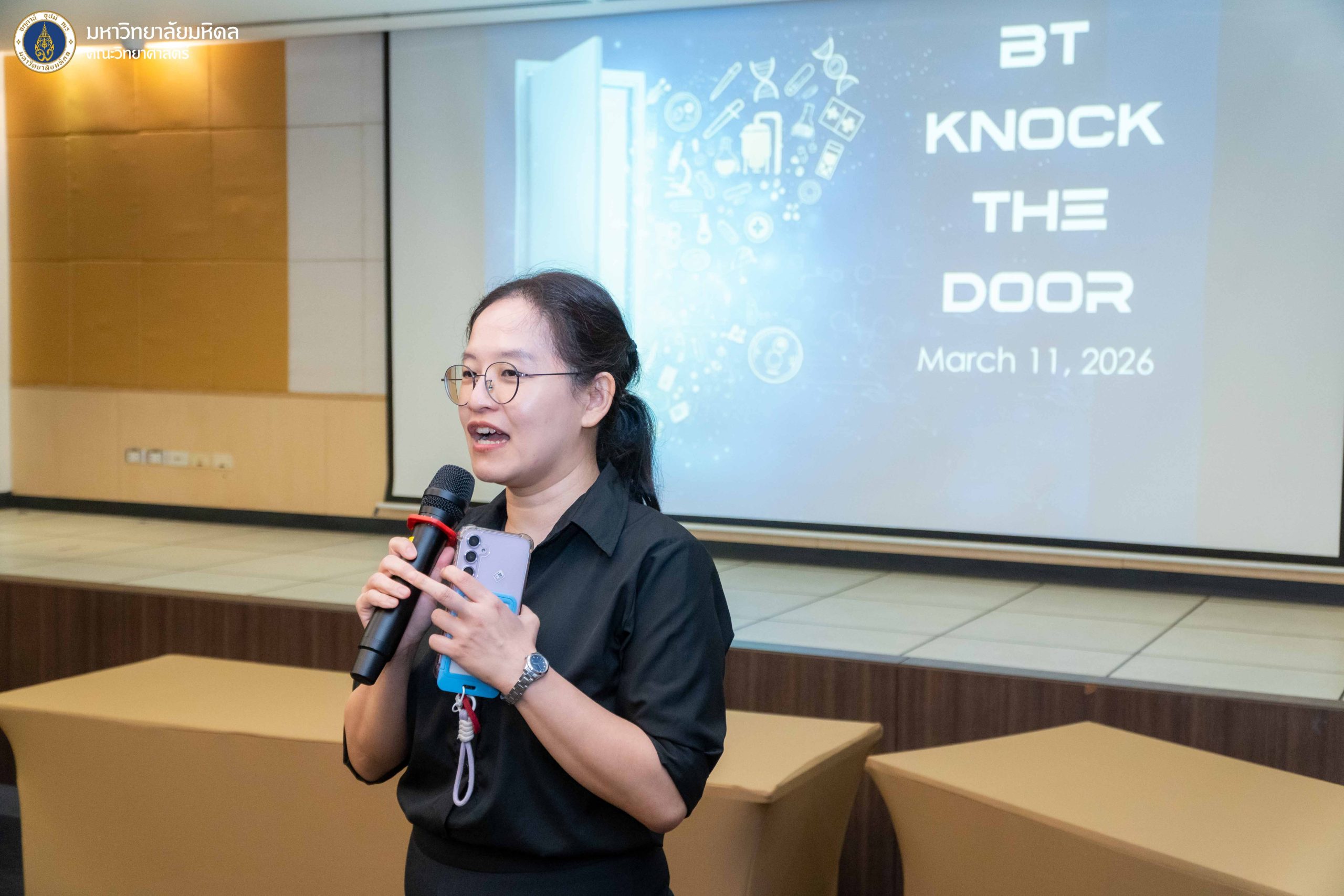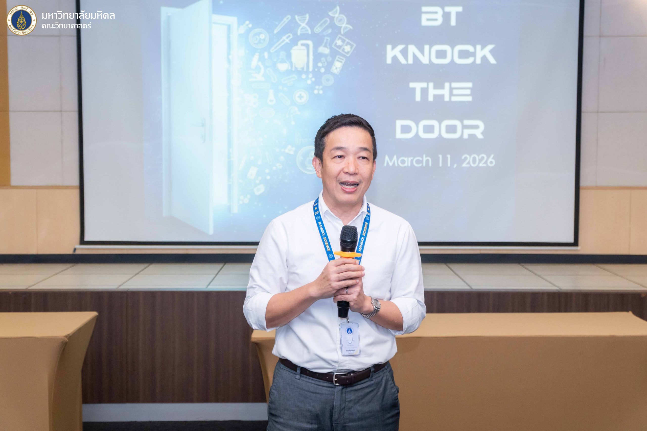 11 มีนาคม 2569 ภาควิชาเทคโนโลยีชีวภาพ คณะวิทยาศาสตร์ มหาวิทยาลัยมหิดล จัดกิจกรรม BT Knock the Door: Exploring Research Together 2026 เปิดประตูโลกของการศึกษาและวิจัยด้านเทคโนโลยีชีวภาพให้แก่นักศึกษาคณะวิทยาศาสตร์ รวมถึงนักเรียนระดับมัธยมศึกษาตอนปลาย เพื่อวางแผนเส้นทางอาชีพในอนาคต ณ ห้องประชุมอาคารสตางค์ มงคลสุข คณะวิทยาศาสตร์ มหาวิทยาลัยมหิดล พญาไท