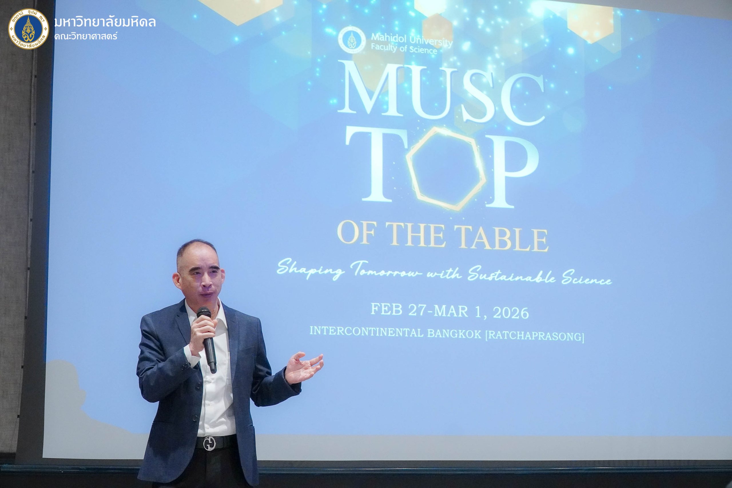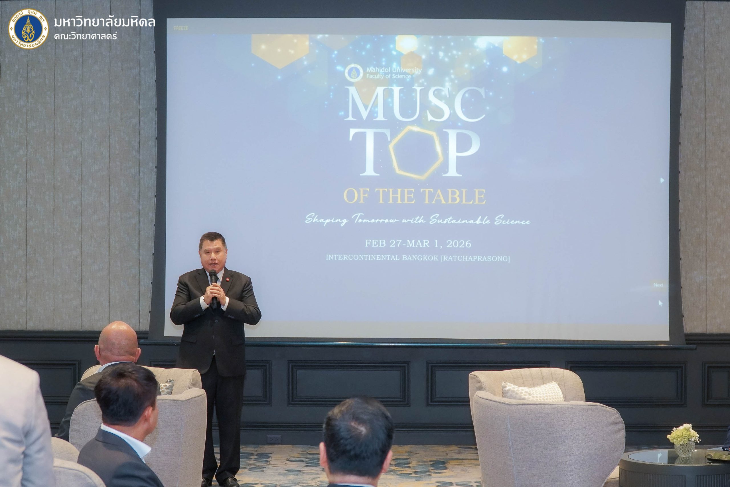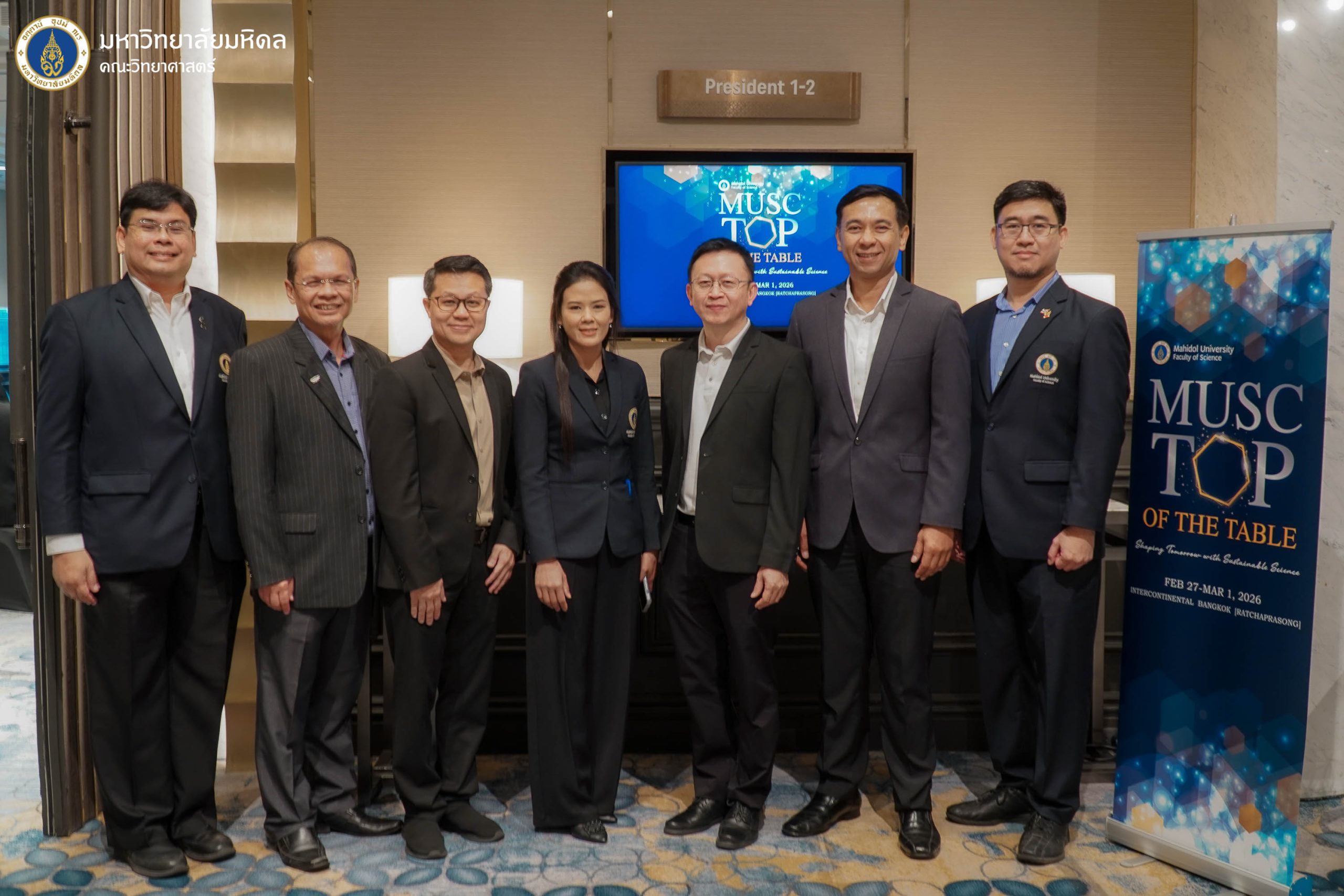 27 กุมภาพันธ์ – 1 มีนาคม 2569 คณะวิทยาศาสตร์ มหาวิทยาลัยมหิดล นำโดย รองศาสตราจารย์ ดร.ประสิทธิ์ สุวรรณเลิศ คณบดี และผู้บริหารคณะวิทยาศาสตร์ จัดงาน MUSC Top of The Table (Cohort 2) ภายใต้แนวคิด Shaping Tomorrow with Sustainable Science” ณ โรงแรมอินเตอร์คอนติเนนตัล กรุงเทพฯ (ราชประสงค์) โดยมีวัตถุประสงค์เพื่อสร้างความรู้ความเข้าใจ และเพิ่มการมีส่วนร่วมของผู้บริหารระดับสูงจากภาครัฐ และเอกชน ร่วมนำองค์ความรู้ทางวิทยาศาสตร์และเทคโนโลยีขับเคลื่อนเศรษฐกิจ สังคม และความมั่นคง เพื่อเพิ่มขีดความสามารถในการแข่งขัน และการพัฒนาประเทศ อีกทั้งส่งเสริมความร่วมมือในเครือข่ายผู้บริหารระดับสูง ในการร่วมผลักดันโครงการและนโยบายทางด้านวิทยาศาสตร์และเทคโนโลยี เพื่อสร้างความยั่งยืนให้กับประเทศ