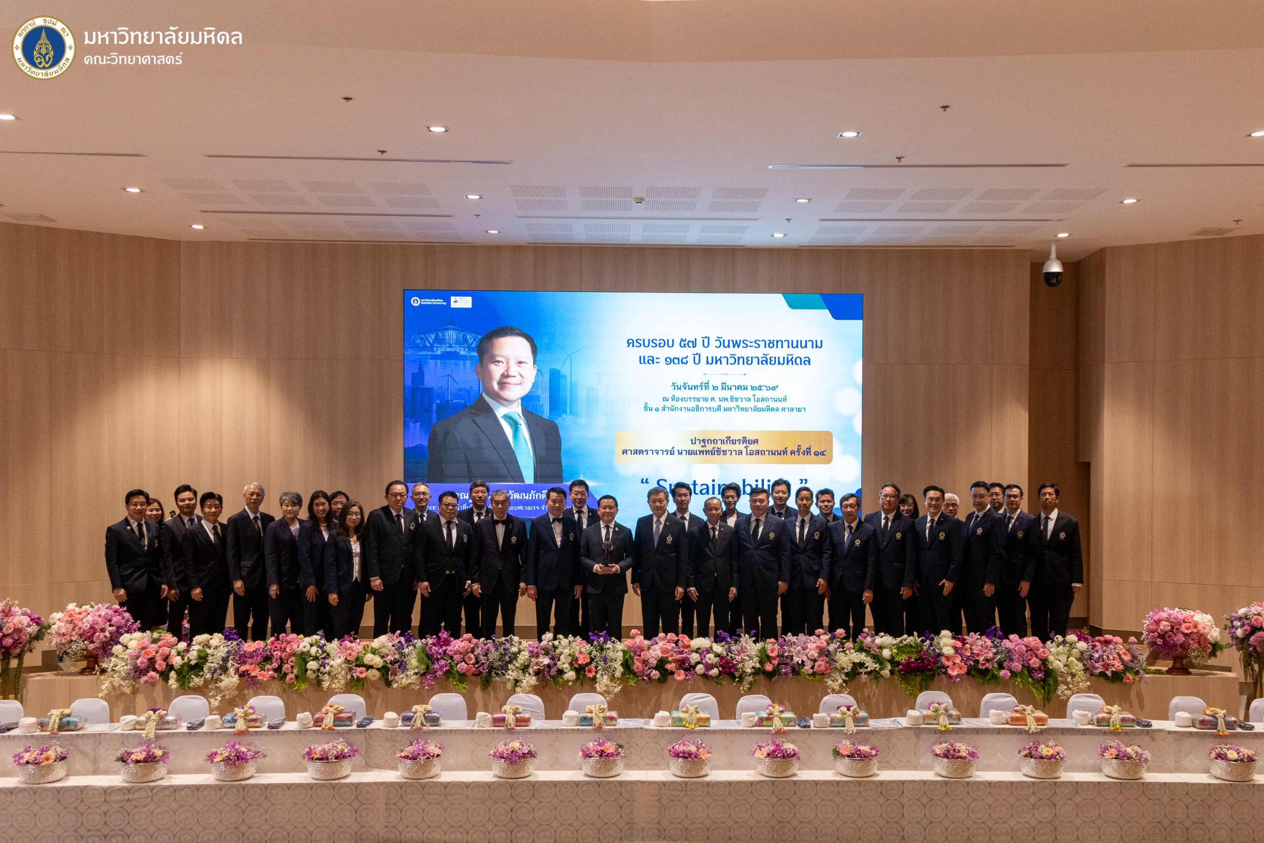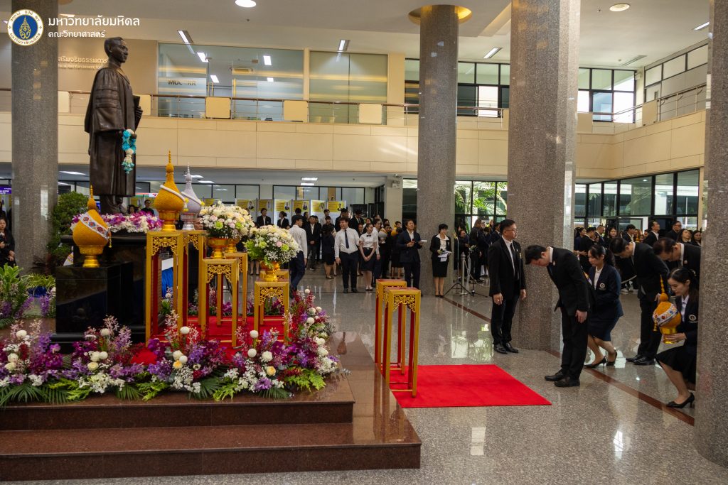 2 มีนาคม 2569 ในโอกาสครบรอบ 57 ปี วันพระราชทานนาม และ 138 ปี มหาวิทยาลัยมหิดล ศาสตราจารย์ นายแพทย์ปิยะมิตร ศรีธรา อธิการบดี คณะผู้บริหารมหาวิทยาลัยมหิดล รวมถึงผู้บริหารส่วนงานต่าง ๆ และคณะผู้บริหารคณะวิทยาศาสตร์ นำโดย รองศาสตราจารย์ ดร.ประสิทธิ์ สุวรรณเลิศ คณบดี พร้อมด้วยคณาจารย์ และบุคลากรเข้าร่วมพิธีวางพานพุ่มถวายราชสักการะพระบรมรูปสมเด็จพระมหิตลาธิเบศร อดุลยเดชวิกรม พระบรมราชชนก และพิธีบำเพ็ญกุศลถวายเป็นพระราชกุศลแด่สมเด็จพระมหิตลาธิเบศร อดุลยเดชวิกรมพระบรมราชชนก พร้อมร่วมฟัง ปาฐกถาเกียรติยศ ศาสตราจารย์ นายแพทย์ชัชวาล โอสถานนท์ ครั้งที่ 14 เนื่องในโอกาสงานครบรอบ 57 ปี วันพระราชทานนาม 138 ปี มหาวิทยาลัยมหิดล เรื่อง “Sustainability” โดย คุณฐาปน สิริวัฒนภักดี ประธานเจ้าหน้าที่บริหาร บริษัท ไทยเบฟเวอเรจ จำกัด (มหาชน) พร้อมเข้าร่วมพิธีเปิดนิทรรศการครบรอบ 57 ปี วันพระราชทานนาม และ 138 ปี มหาวิทยาลัยมหิดล “สายธารพระบารมี บรมราชินีนาถ” ณ โถงชั้น 1 สำนักงานอธิการบดี มหาวิทยาลัยมหิดล ศาลายา