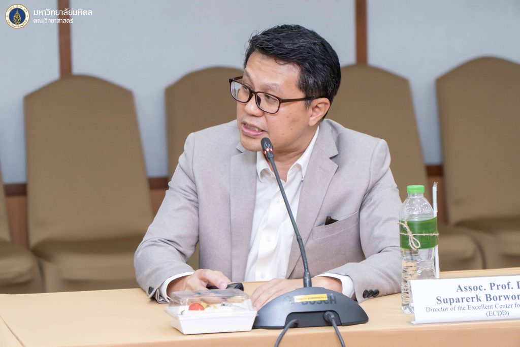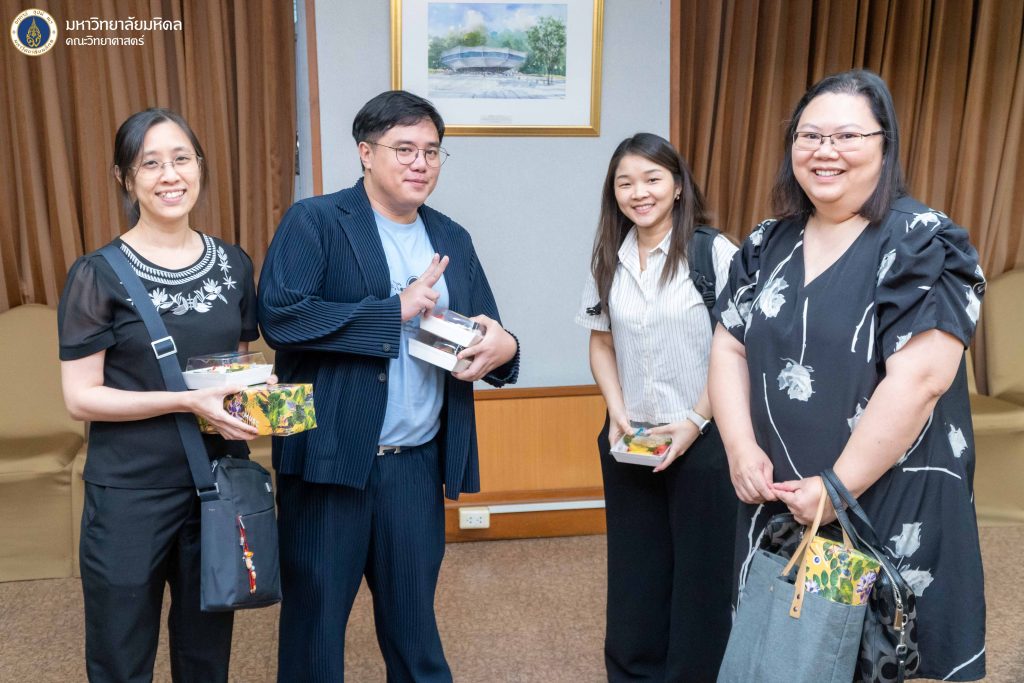 และคณะศึกษาดูงานจาก ศูนย์พันธุวิศวกรรมและเทคโนโลยีชีวภาพแห่งชาติ (BIOTEC) นำโดย Dr.Samaporn Teeravechyan : Researcher, Virology and Cell Technology Research Team, Dr.Nitipol Srimongkolpithak : Researcher, Bio-organic Chemistry Research Team, Dr.Nuttawan Pramanpol : Senior Analyst และ Dr.Onanong Vorasin : Researcher, Bio-organic Chemistry Research Team ในโอกาสเข้าเยี่ยมชมและศึกษาดูงานศูนย์วิจัยและหน่วยวิจัยต่าง ๆ ภายในคณะวิทยาศาสตร์ โดยมีวัตถุประสงค์เพื่อรับทราบเกี่ยวกับบทบาท ภารกิจหลัก การให้บริการต่าง ๆ ผ่านการเยี่ยมชมและศึกษาดูงานศูนย์วิจัยและหน่วยงานวิจัยต่างๆ ภายในคณะวิทยาศาสตร์ พร้อมทั้งหารือความร่วมมือทางด้านการวิจัยในอนาคตร่วมกัน ณ ห้องประชุม K102 อาคารเฉลิมพระเกียรติ คณะวิทยาศาสตร์ มหาวิทยาลัยมหิดล วิทยาเขตพญาไท