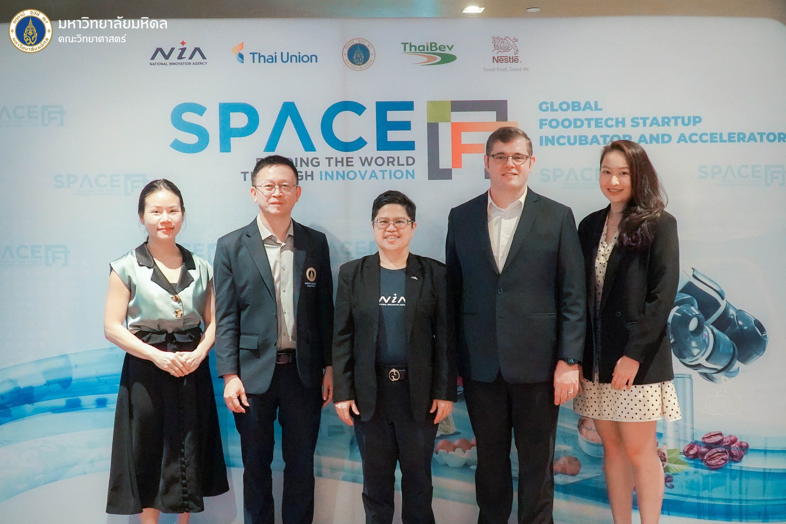 30 มีนาคม 2569 – 1 เมษายน 2569 มหาวิทยาลัยมหิดล นำโดย คณะวิทยาศาสตร์ และ สถาบันบริหารจัดการเทคโนโลยีและนวัตกรรม (iNT) ร่วมกับพันธมิตร NIA, Thai Union, ThaiBev, Nestlé และ FOODLAND VENTURES เดินหน้าคัดเลือก 10 สตาร์ทอัพ ด้านนวัตกรรมและเทคโนโลยีอาหารจากนานาชาติ เพื่อเข้าร่วมโปรแกรมเร่งการเติบโตธุรกิจในโครงการ SPACE-F BATCH 7 ภายใต้แนวคิด “Feeding the World Through Innovation” ณ VIE Hotel Bangkok – MGallery Collection กรุงเทพฯ โดยมีวัตถุประสงค์เพื่อค้นหาและบ่มเพาะผู้ประกอบการทางด้านนวัตกรรมและเทคโนโลยีอาหาร เพื่อยกระดับศักยภาพในการพัฒนาผลิตภัณฑ์และบริการให้ตอบโจทย์ความต้องการของตลาดอุตสาหกรรมอาหารโลกอย่างยั่งยืน และเพิ่มขีดความสามารถในการแข่งขัน และเปิดโอกาสในการเติบโตในอุตสาหกรรมอาหารในประเทศไทยและภูมิภาคเอเชียตะวันออกเฉียงใต้ร่วมกับพาร์ทเนอร์ธุรกิจระดับโลก