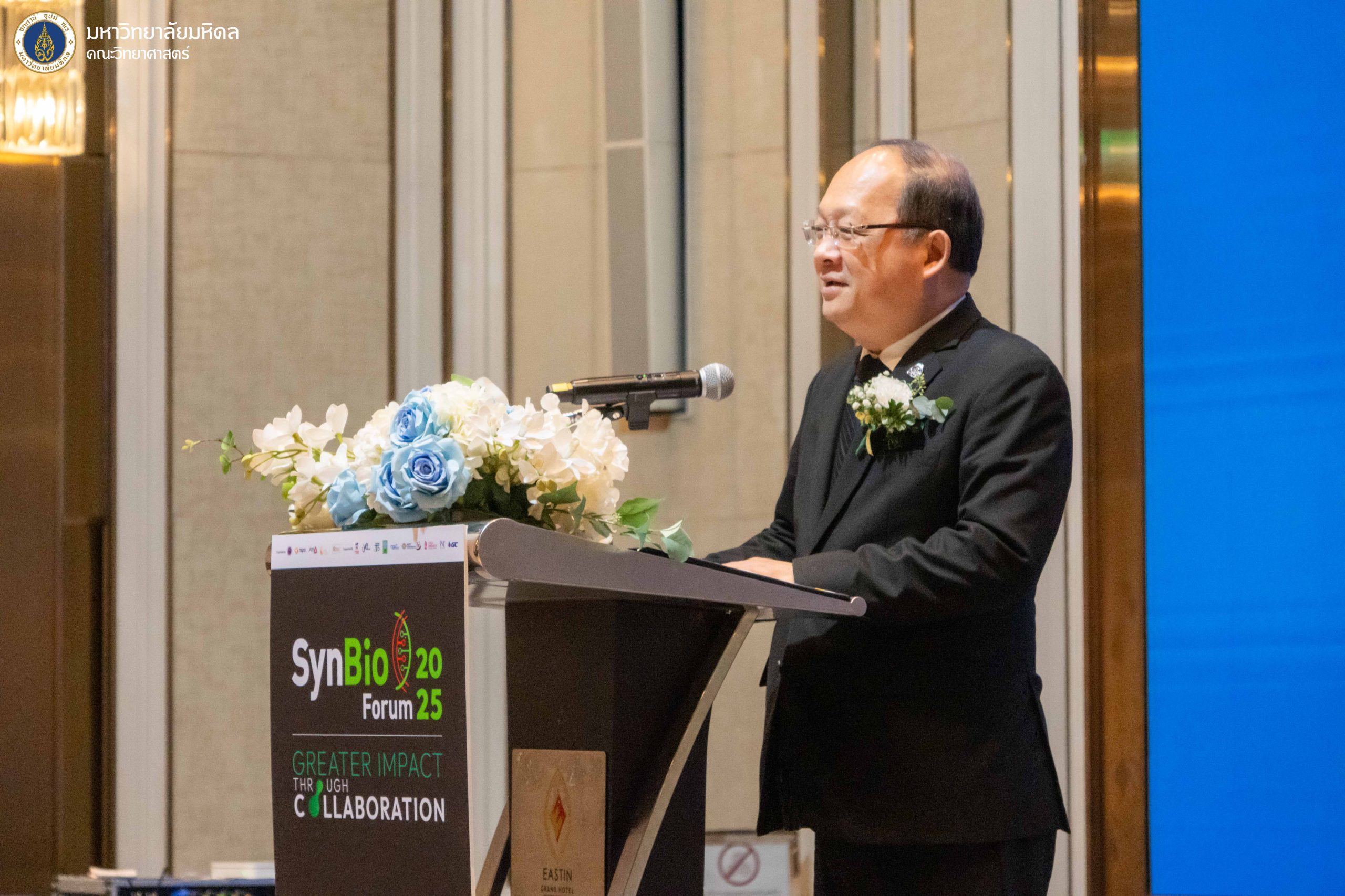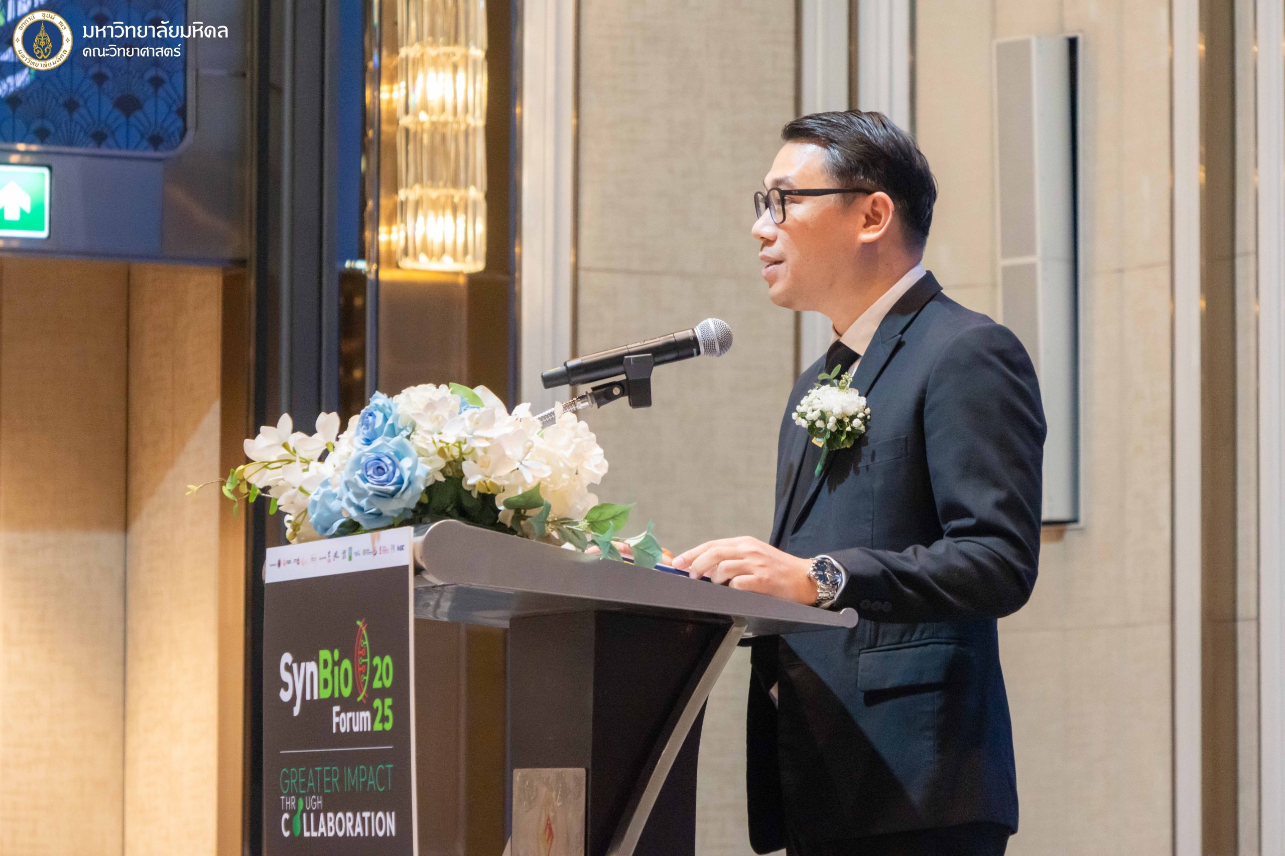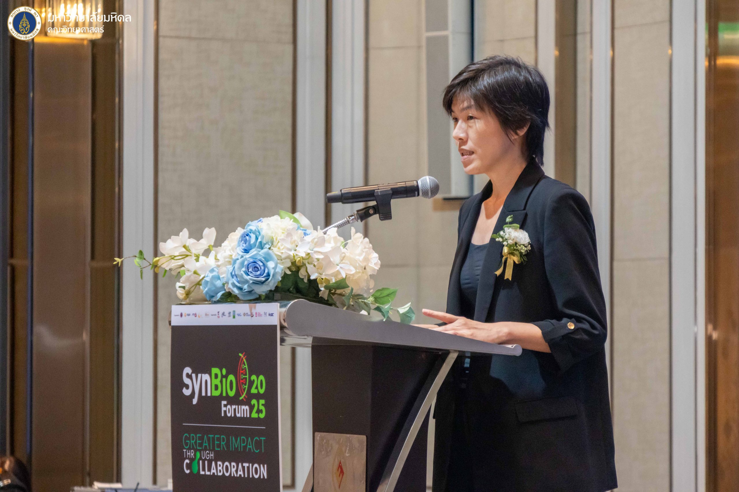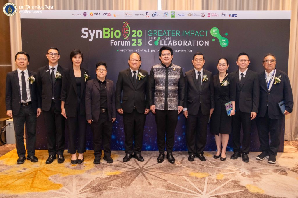 11 พฤศจิกายน 2568 คณะวิทยาศาสตร์ มหาวิทยาลัยมหิดล นำโดย รองศาสตราจารย์ ดร.พสิษฐ์ ภควัชร์ภาณุรัตน์ รองคณบดีฝ่ายวิจัยและนวัตกรรม, รองศาสตราจารย์ ดร.ชื่นจิตต์ บุญเฉิด นายกสมาคมเทคโนโลยีชีวภาพแห่งประเทศไทย, รองศาสตราจารย์ ดร.กัลยา เกตุวงศา อาจารย์ประจำภาควิชาชีวเคมี และ ผู้ช่วยศาสตราจารย์ ดร.ป๋วย อุ่นใจ อาจารย์ประจำภาควิชาชีววิทยา เข้าร่วมงานแถลงข่าวเปิดตัว Thailand SynBio Consortium และงานประชุมสัมมนาวิชาการนานาชาติ “SynBio Forum 2025 : Greater Impact through Collaboration” ซึ่งจัดโดย ภาคีเครือข่ายชีววิทยาสังเคราะห์ประเทศไทย (Thailand SynBio Consortium) ณ ห้องประชุมพญาไท 1 – 3 โรงแรม อีสติน แกรนด์ พญาไท กรุงเทพมหานคร โดยมีวัตถุประสงค์เพื่อติดตามความก้าวหน้าเชิงนโยบายและทิศทางการพัฒนาชีววิทยาสังเคราะห์ระดับโลก พร้อมทั้งนำเสนอกรณีความสำเร็จของความร่วมมือด้านชีววิทยาสังเคราะห์ ทั้งในประเทศไทยและต่างประเทศ อีกทั้งยังเป็นการจัดกิจกรรมสร้างเครือข่ายระหว่างนักวิจัย ภาครัฐ ภาคอุตสาหกรรม และนักลงทุน เพื่อเปิดโอกาสความร่วมมือและการต่อยอดผลงานวิจัยสู่การใช้ประโยชน์เชิงพาณิชย์