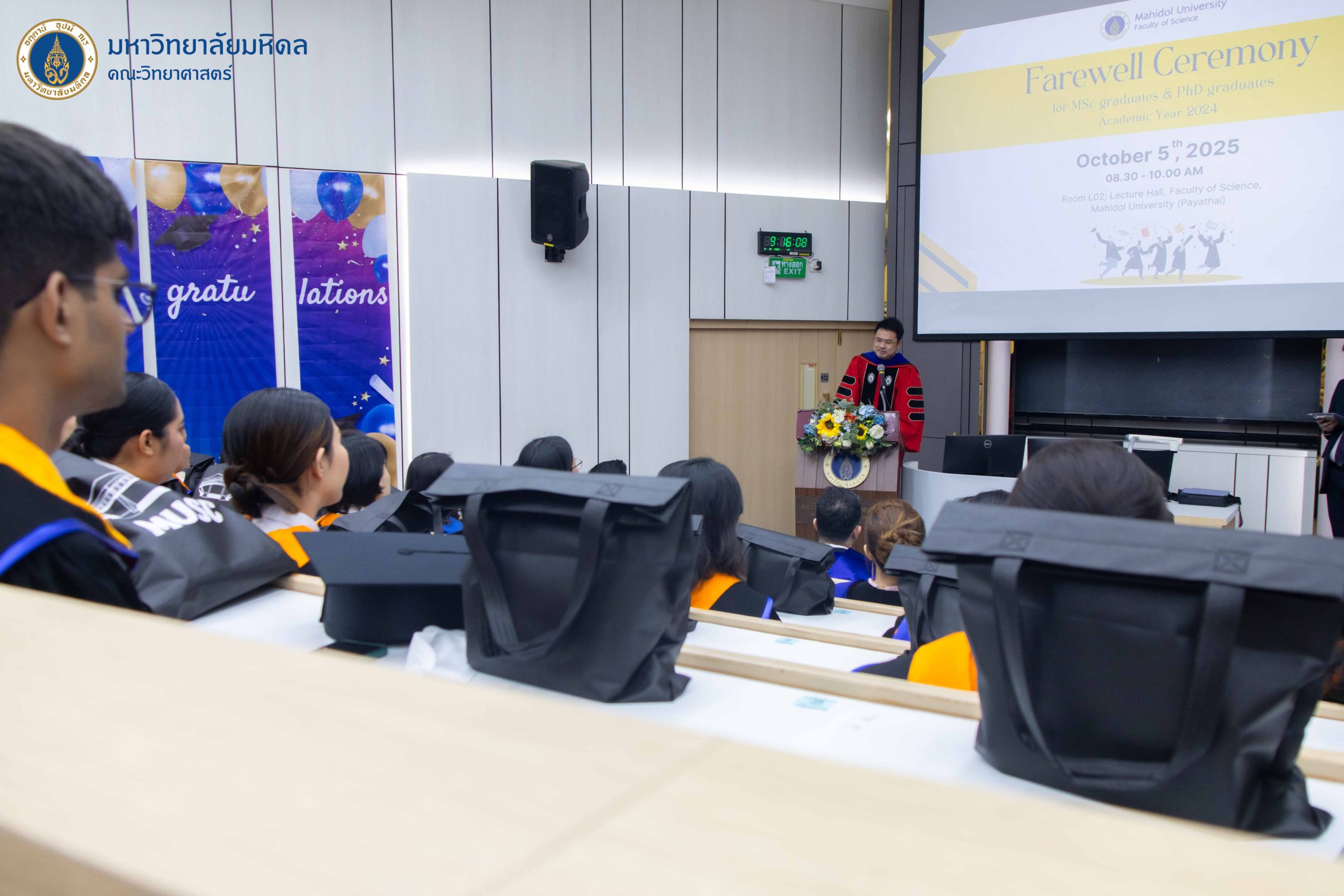 คณะวิทย์ ม.มหิดล ฉลองความสำเร็จแก่บัณฑิตคณะวิทยาศาสตร์ จัดพิธีปัจฉิมนิเทศบัณฑิตระดับปริญญาตรี และพิธีปัจฉิมนิเทศมหาบัณฑิตและดุษฎีบัณฑิต ประจำปีการศึกษา 2567