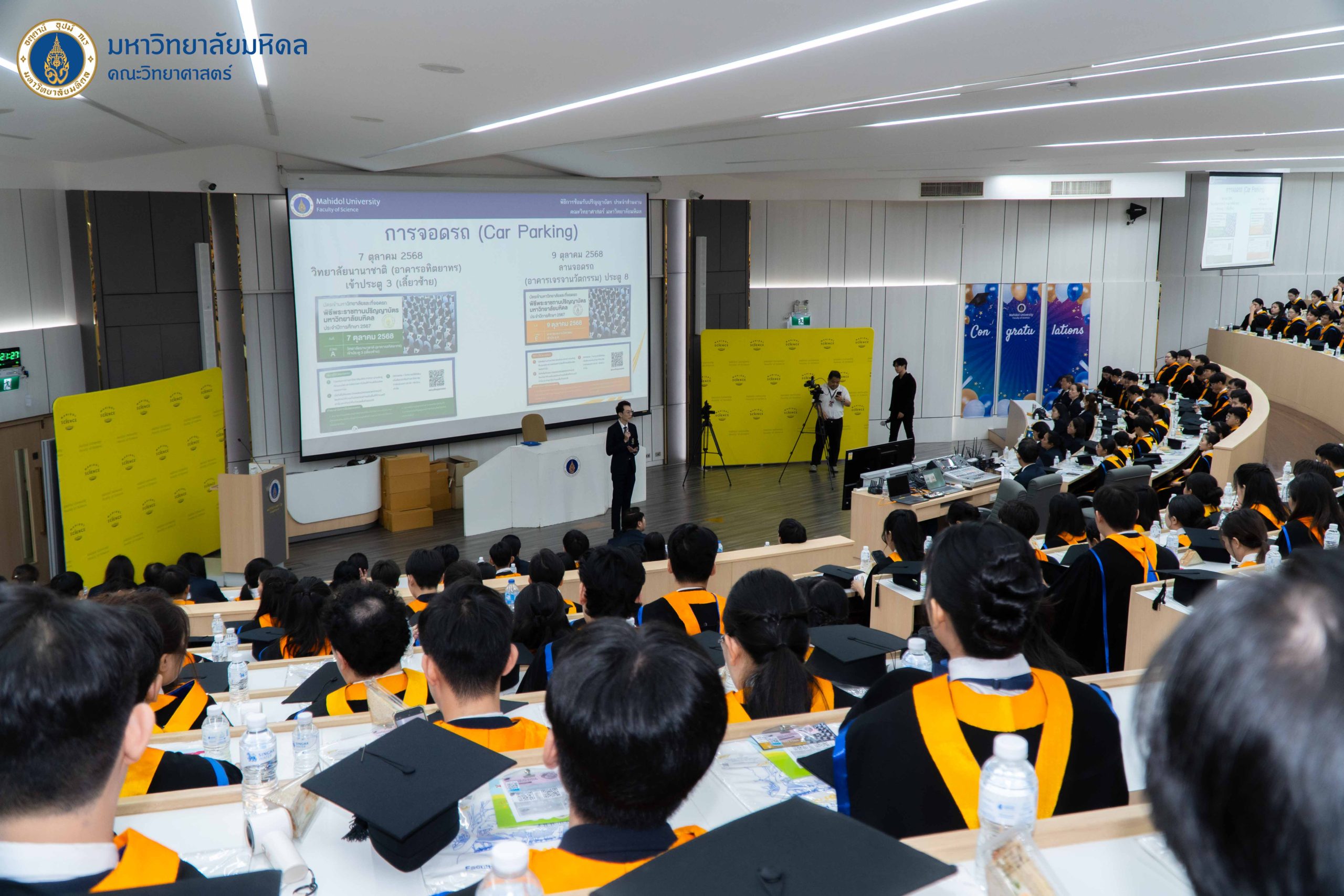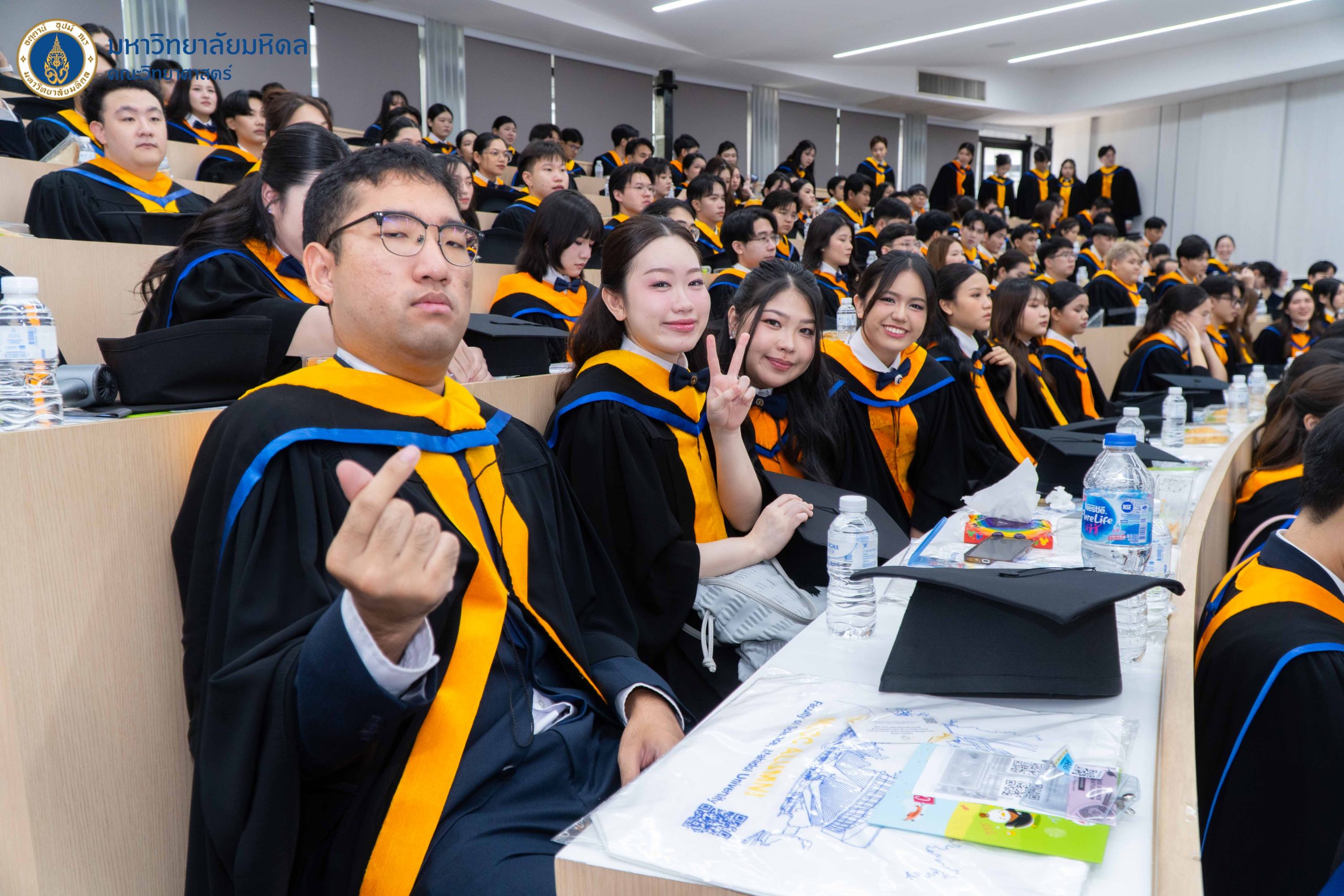 5 ตุลาคม 2568 คณะวิทยาศาสตร์ มหาวิทยาลัยมหิดล ฉลองความสำเร็จแก่บัณฑิตคณะวิทยาศาสตร์ จัดพิธีปัจฉิมนิเทศบัณฑิตระดับปริญญาตรี พร้อมกับพิธีปัจฉิมนิเทศมหาบัณฑิตและดุษฎีบัณฑิต ประจำปีการศึกษา 2567 ณ อาคารบรรยายรวม (ตึกกลม) คณะวิทยาศาสตร์ มหาวิทยาลัยมหิดล พญาไท