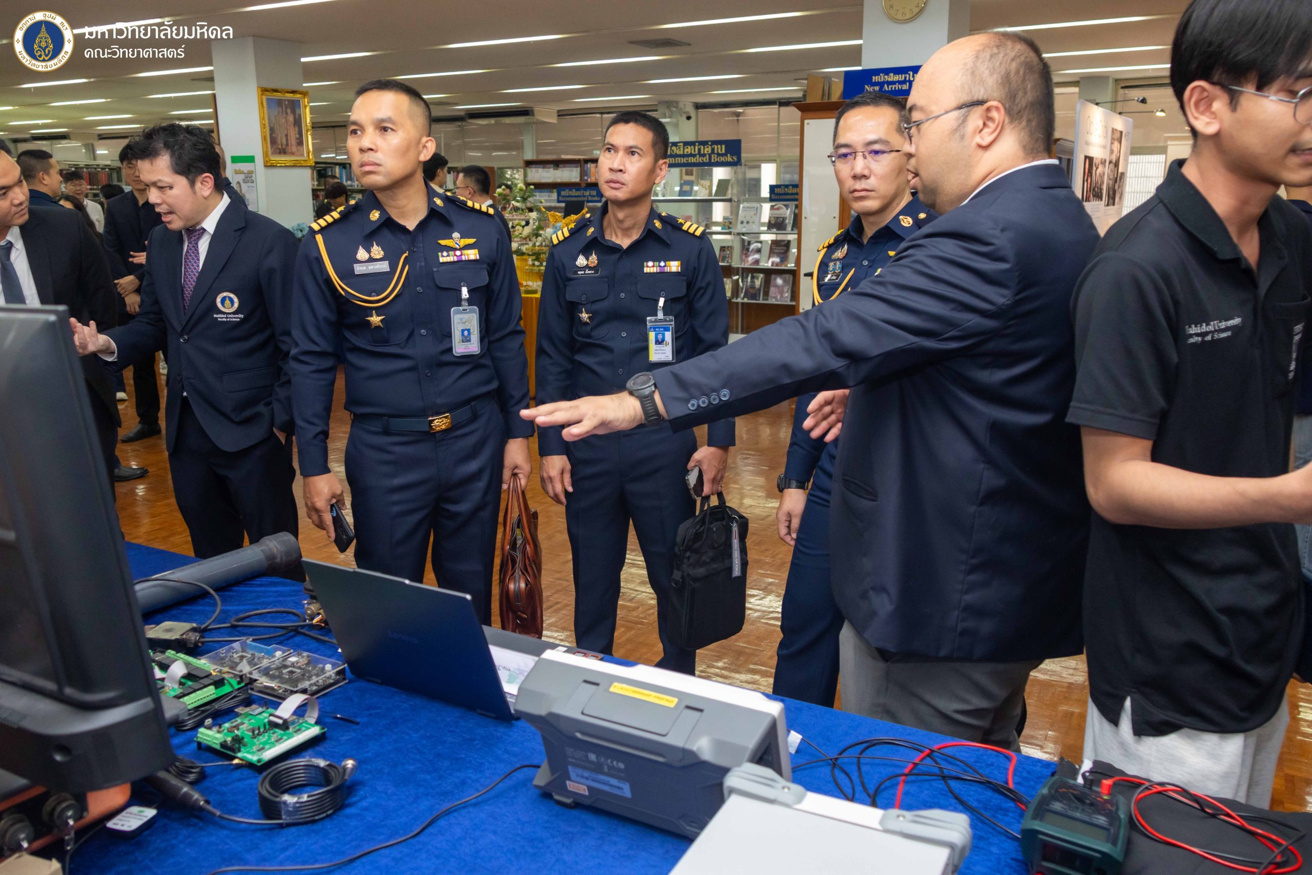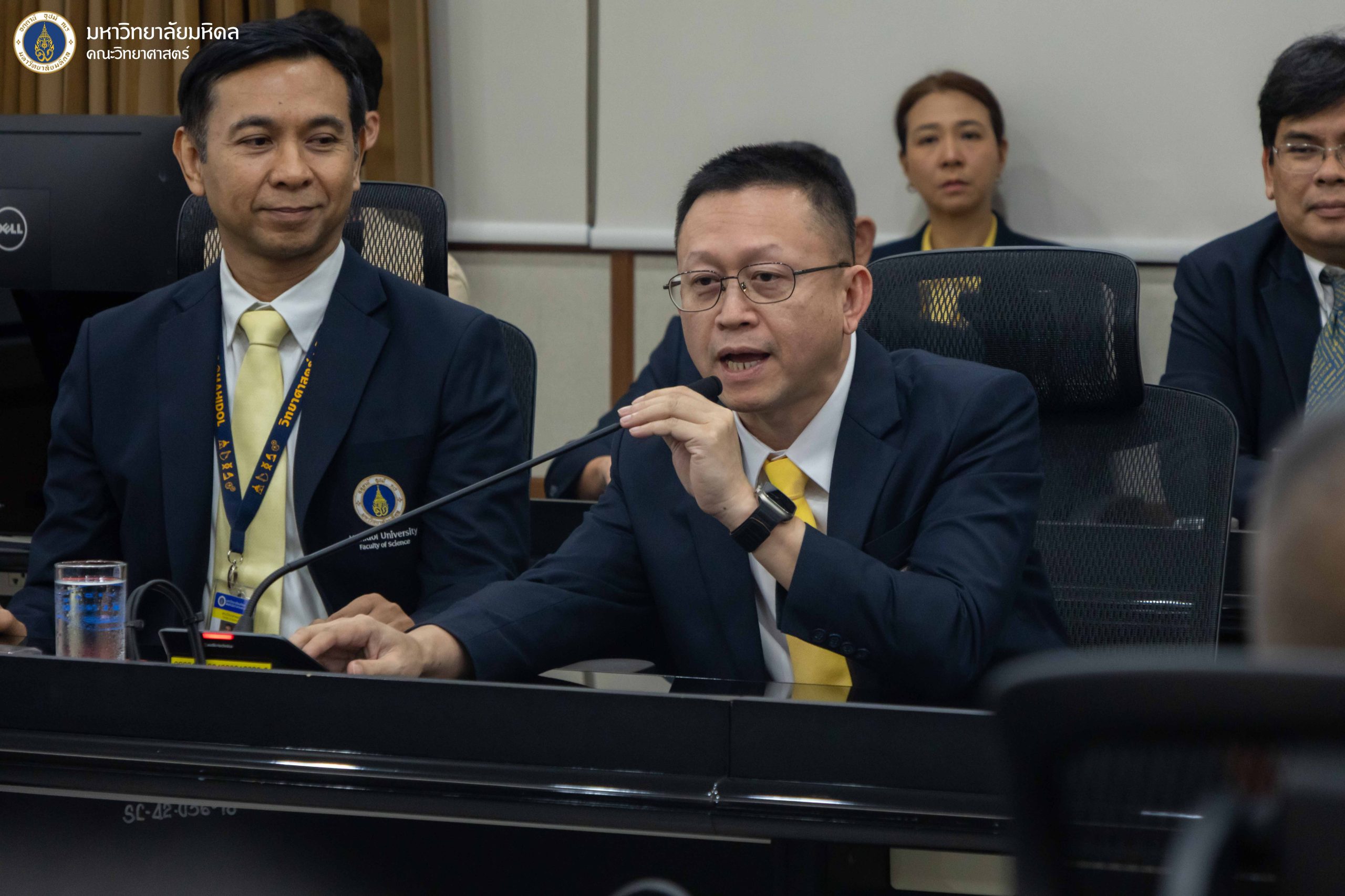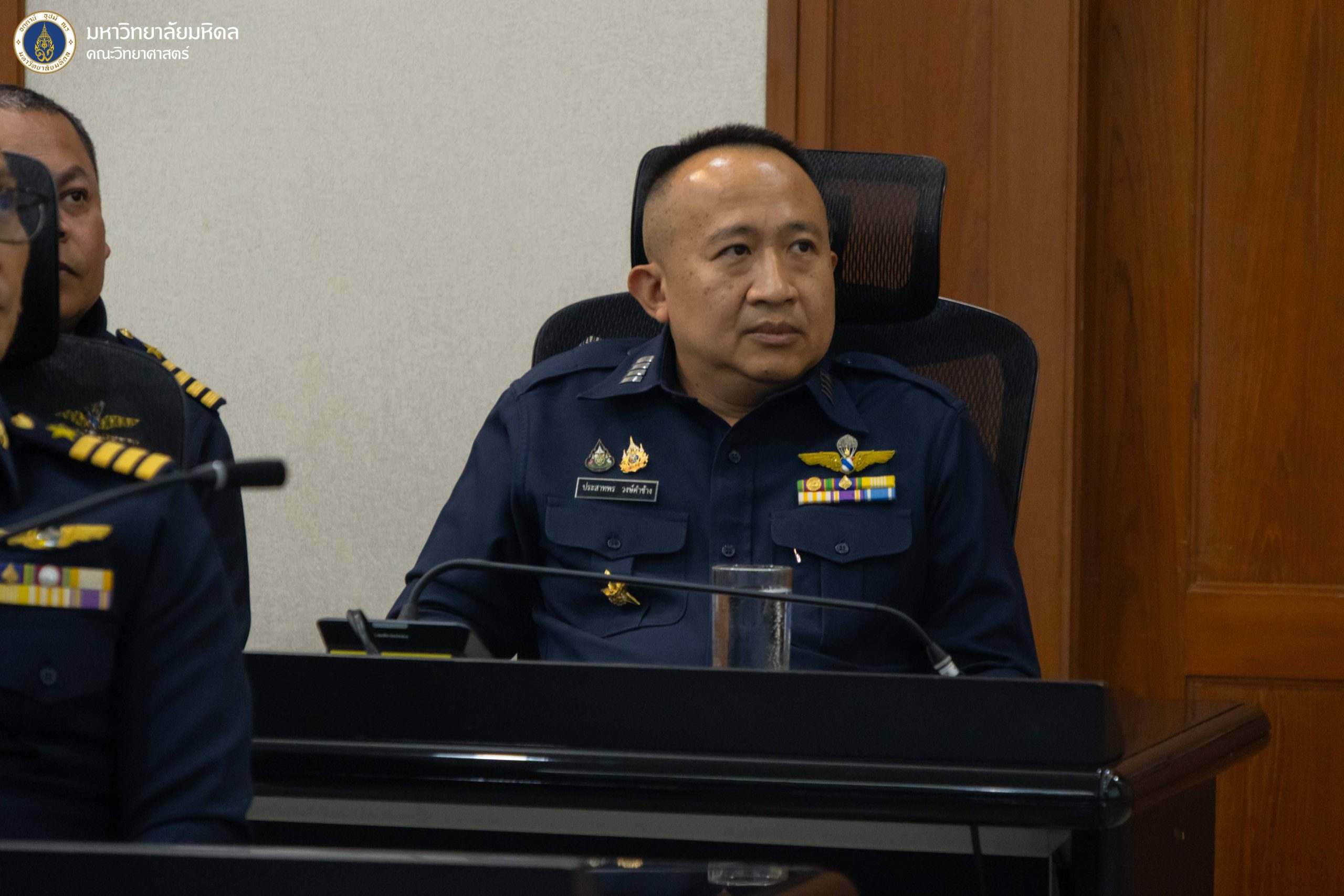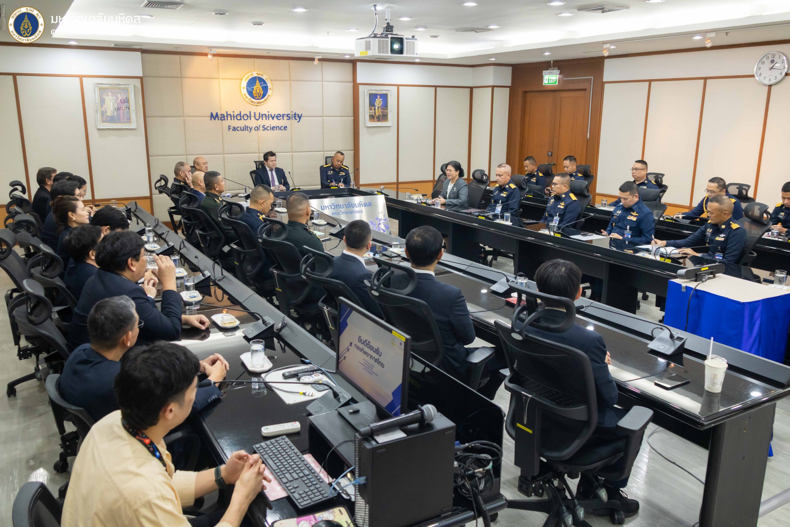 15 กันยายน 2568 คณะวิทยาศาสตร์ มหาวิทยาลัยมหิดล นำโดย รองศาสตราจารย์ ดร.ประสิทธิ์ สุวรรณเลิศ คณบดี และทีมผู้บริหาร หัวหน้าภาควิชา หัวหน้ากลุ่มสาขาวิชา และคณาจารย์คณะวิทยาศาสตร์ ให้การต้อนรับกองทัพอากาศไทย นำโดย พลอากาศโท บุญเลิศ อันดารา ผู้อำนวยการกองกิจการอวกาศ ศูนย์วิจัยพัฒนาวิทยาศาสตร์เทคโนโลยีการบินและอวกาศกองทัพอากาศ พร้อมด้วยพลอากาศตรี พูนศักดิ์ ปิยะรัตน์ ผู้อำนวยการสำนักนโยบายและแผน กรมยุทธการทหารอากาศ พลอากาศตรี ศุภกร จิตตรีขันธ์ ผู้บัญชาการศูนย์ปฏิบัติการทางอวกาศกองทัพอากาศ พลอากาศตรี รองศาสตราจารย์ สมเกียรติ สุกางโฮง ผู้อำนวยการกองการศึกษา โรงเรียนนายเรืออากาศนวมินทกษัตริยาธิราช และพลอากาศโทหญิง ปัญจฉัตร รัตนมงคล พร้อมคณะผู้ศึกษาดูงาน และในโอกาสพิเศษนี้ กรมวิทยาศาสตร์และเทคโนโลยีกลาโหม นำโดย พลโท คม วิริยเวชกุล หัวหน้าสำนักปลัดกระทรวงกลาโหม และว่าที่เจ้ากรมวิทยาศาสตร์และเทคโนโลยีกลาโหม และพลเอก พงศกร เพ็ญตระกูล รวมทั้งภาคเอกชน ได้เข้าร่วมต้อนรับผู้บัญชาการระดับสูงจากกองทัพอากาศ และหารือความร่วมมือ ณ ห้องประชุม K101 อาคารเฉลิมพระเกียรติ คณะวิทยาศาสตร์ มหาวิทยาลัยมหิดล พญาไท ในโอกาสเข้าเยี่ยมชมคณะวิทยาศาสตร์ มหาวิทยาลัยมหิดล และร่วมการประชุมหารือความร่วมมือด้านการวิจัยและนวัตกรรม