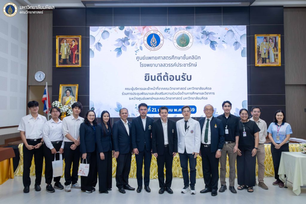วันที่ 20 เมษายน 2569 มหาวิทยาลัยมหิดล ร่วมกับ สำนักงานพัฒนาวิทยาศาสตร์และเทคโนโลยีแห่งชาติ (สวทช.) จัดกิจกรรม MU–NSTDA Researcher Visit ประจำปี 2569 ครั้งที่ 1 โอกาสนี้ ศาสตราจารย์ นายแพทย์ หม่อมหลวงชาครีย์ กิติยากร รองอธิการบดีฝ่ายวิจัย มหาวิทยาลัยมหิดล พร้อมด้วย ดร.สมบุญ สหสิทธิวัฒน์ รองผู้อำนวยการสำนักงานพัฒนาวิทยาศาสตร์และเทคโนโลยีแห่งชาติ (สวทช.) สายงานบริหารการวิจัยและพัฒนา กล่าวต้อนรับและนำเสนอทิศทางการขับเคลื่อนความร่วมมือด้านการวิจัยระหว่างสองหน่วยงาน ประจำปี 2569 ณ ห้องประชุม CO-113 Auditorium อาคารสำนักงานกลาง อุทยานวิทยาศาสตร์ประเทศไทย จังหวัดปทุมธานี โดยได้รับเกียรติจาก รศ. ดร.พสิษฐ์ ภควัชร์ภาณุรัตน์ รองคณบดีฝ่ายวิจัยและนวัตกรรม รศ. ดร.วัฒนา วีรชาติยานุกูล รองคณบดีฝ่ายวิชาการและศาลายา และรองศาสตราจารย์ ดร.ดาครอง พิศสุวรรณ กลุ่มสาขาวิชาชีวนวัตกรรมและผลิตภัณฑ์ฐานชีวภาพอัจฉริยะ กิจกรรมดังกล่าวจัดขึ้นภายใต้บันทึกข้อตกลงความร่วมมือ (MOU) เพื่อส่งเสริมการพัฒนางานวิจัยและนวัตกรรมสู่ความเป็นเลิศเพื่อเปิดโอกาสให้อาจารย์และนักวิจัยจากทั้งสองหน่วยงานได้เข้าเยี่ยมชมและเข้าถึงโครงสร้างพื้นฐานด้านวิจัยของ […]