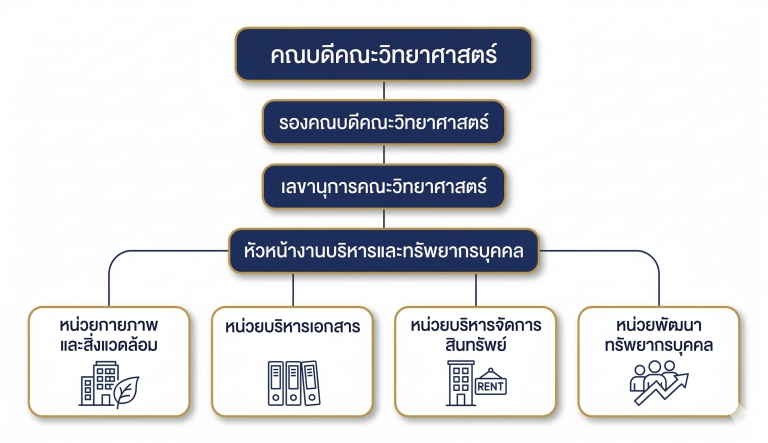งานบริหารและทรัพยากรบุคคล ทำหน้าที่ดูแลสถานที่ และดูแลความเรียบร้อยทั่วไปของคณะวิทยาศาสตร์ ประกอบด้วย หน่วยงานย่อยภายใน จำนวน 4 หน่วย ดังนี้