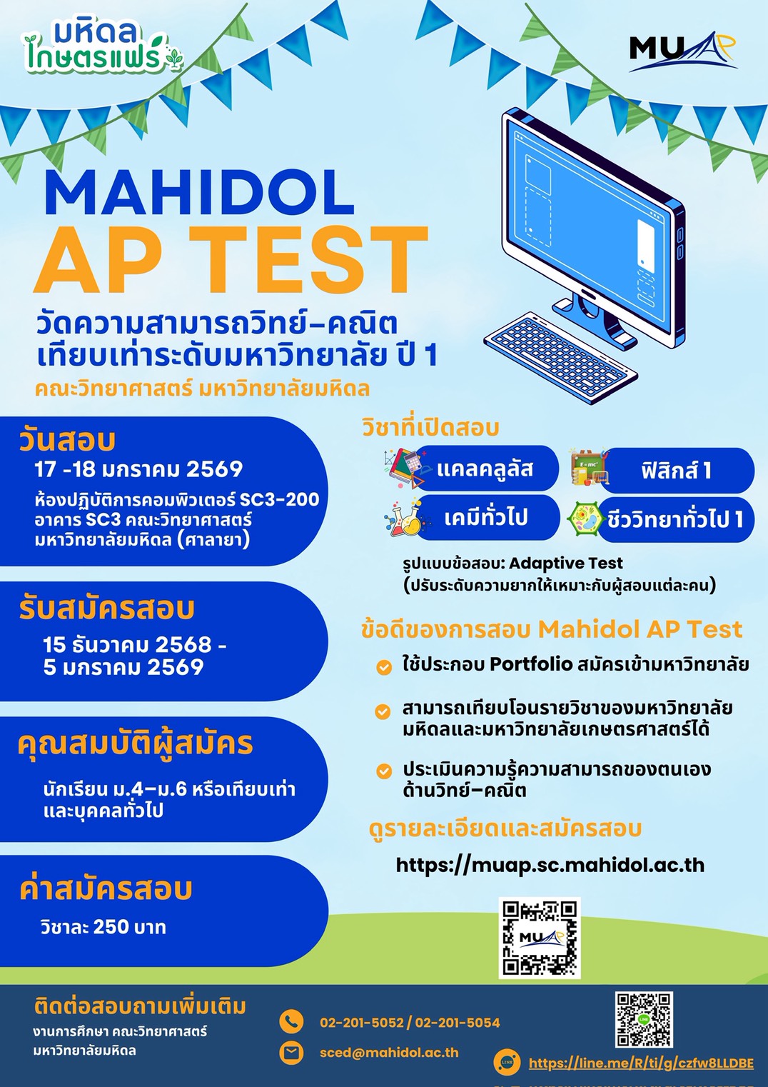 สำหรับนักศึกษา ปี 1 ในสาขาวิชาที่เกี่ยวข้องของคณะวิทยาศาสตร์