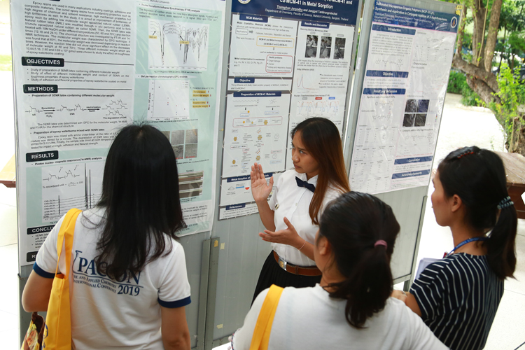 Due to the recognition of the Faculty of Science as a leader in research in various fields of science, several high-quality research outcomes that continuously express in both national and international levels. This is because the faculty’s member in the Faculty of Science has been supported in research in terms of budget, materials, equipment and facilities. Most importantly, there is cooperation between professors, scientific staffs and students at the bachelor’s, master’s and doctoral levels. In this regard, the science students in the master’s-doctoral level had the opportunity to present their work in various academic conferences nationally and internationally. To enable the undergraduate science students who conduct research in the 4th year of a Senior Project or a Special Problem as part of the program to express their ability to perform research with high efficiency. Moreover, this could be the great opportunity for the students to gain their research presentation skills to the public. The Faculty of Science has arranged to display the work of this group of students. The student’s work will be transmitted to the personnel of the Faculty of Science as well as lecturers, researchers, scientists, and experts from various educational institutions and general people interested in scientific advances widely.