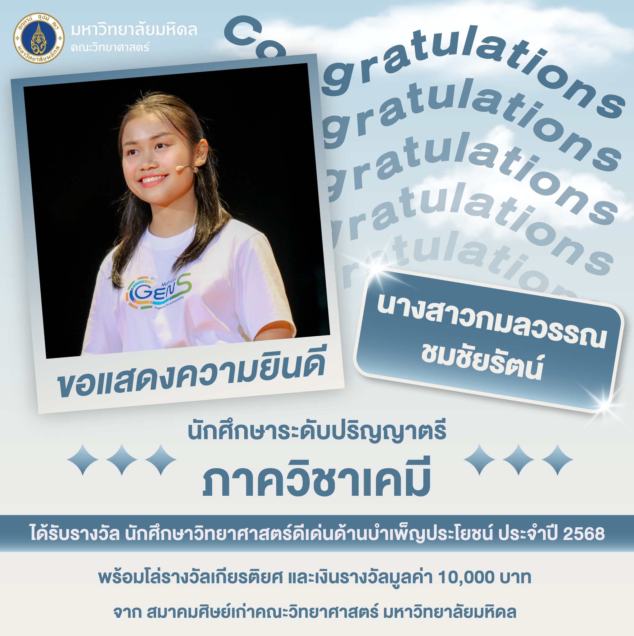 คณะวิทยาศาสตร์ มหาวิทยาลัยมหิดล ขอแสดงความยินดีกับนักศึกษาสุดเก่ง