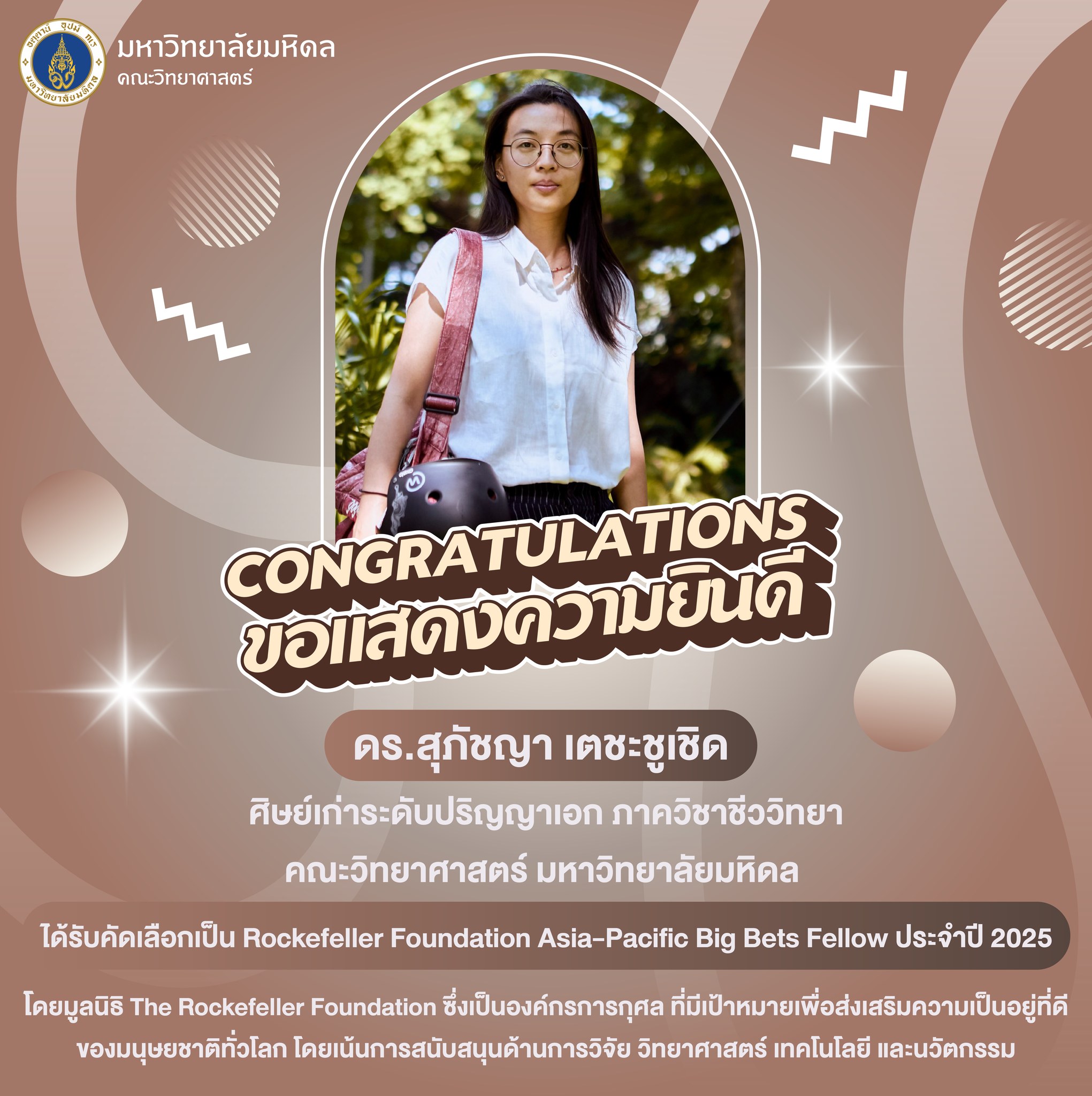 คณะวิทยาศาสตร์ มหาวิทยาลัยมหิดล ขอแสดงความยินดีกับศิษย์เก่าสุดเก่ง